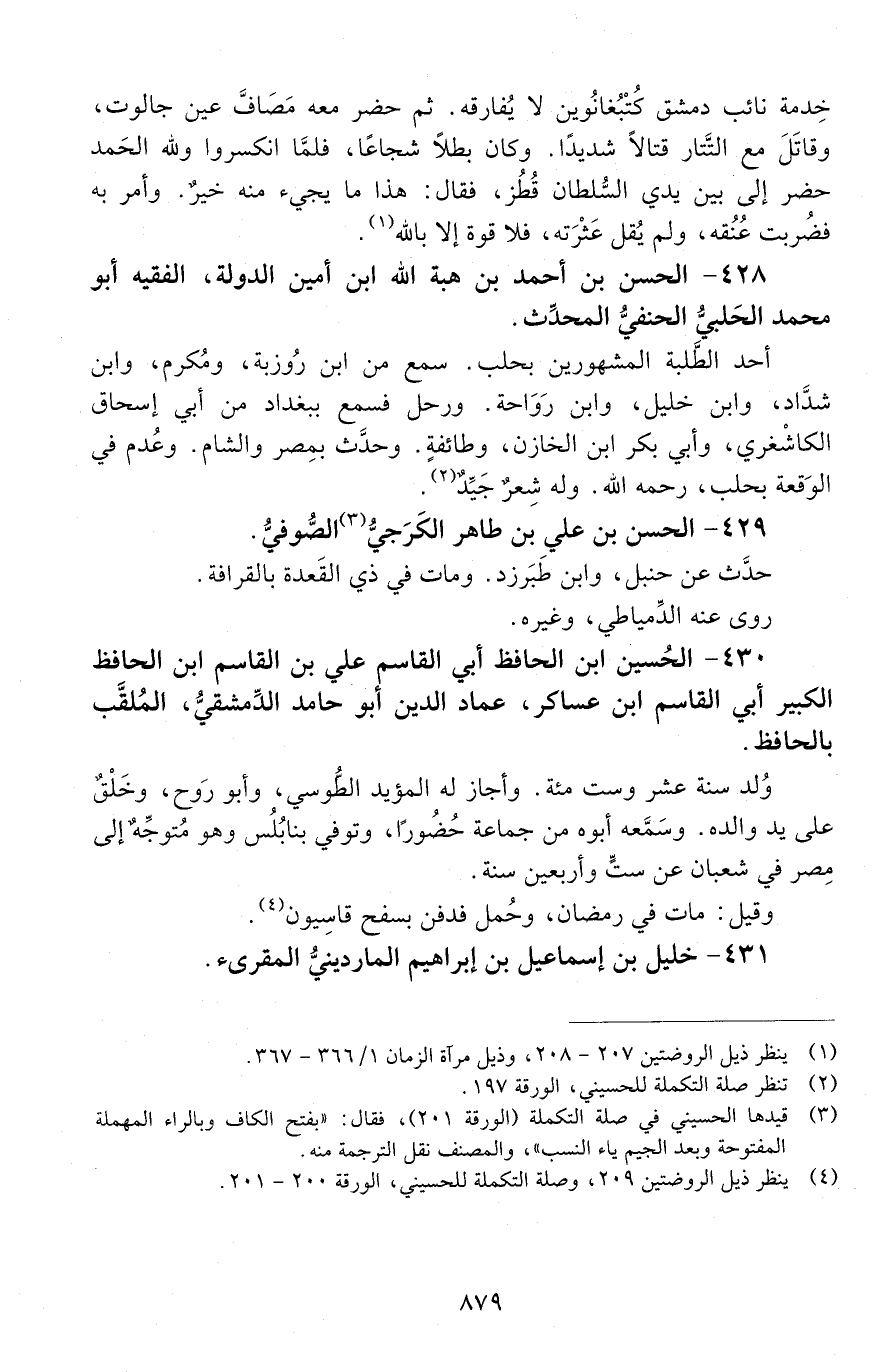 430 - الحسين ابن الحافظ أبي القاسم عليّ بْن القاسم ابن الحافظ الكبير أبي القاسم ابن عساكر، عمادُ الدين، أبو حامد الدّمشقيّ، الملقَّب بالحافظ. [المتوفى: 658 هـ]