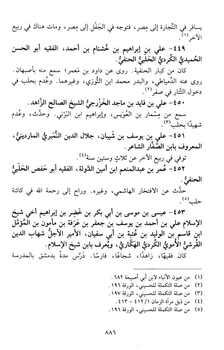 449 - عليّ بْن إبراهيم بْن خُشْنام بْن أحمد، الْفَقِيهُ، أبو الحَسَن الحُميْديّ الكردي الحلبي، الحنفيّ. [المتوفى: 658 هـ]