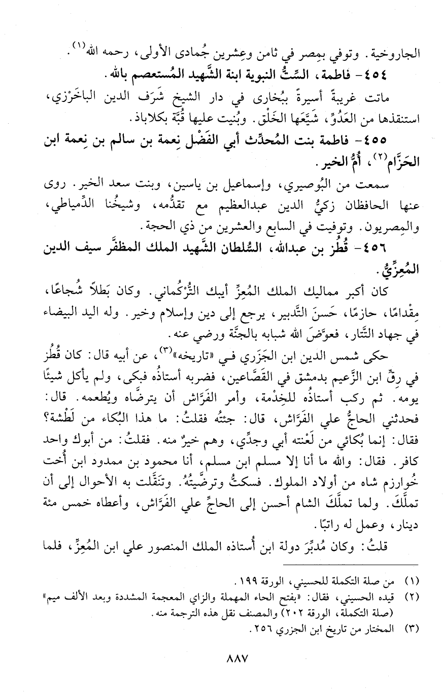 454 - فاطمة، الست النبوية ابْنَة الشهيد المستعصم بالله. [المتوفى: 658 هـ]