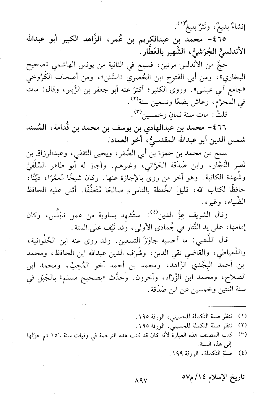465 - محمد بْن عَبْد الكريم بْن عُمَر، الزّاهد الكبير أبو عَبْد الله الأندلسيّ الجرشيّ، الشهير بالعطار. [المتوفى: 658 هـ]