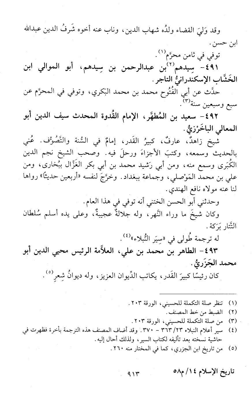 492 - سَعِيد بْن المطهر، الإمام القدوة المحدث سيف الدين أبو المعالي الباخَرزي. [المتوفى: 659 هـ]