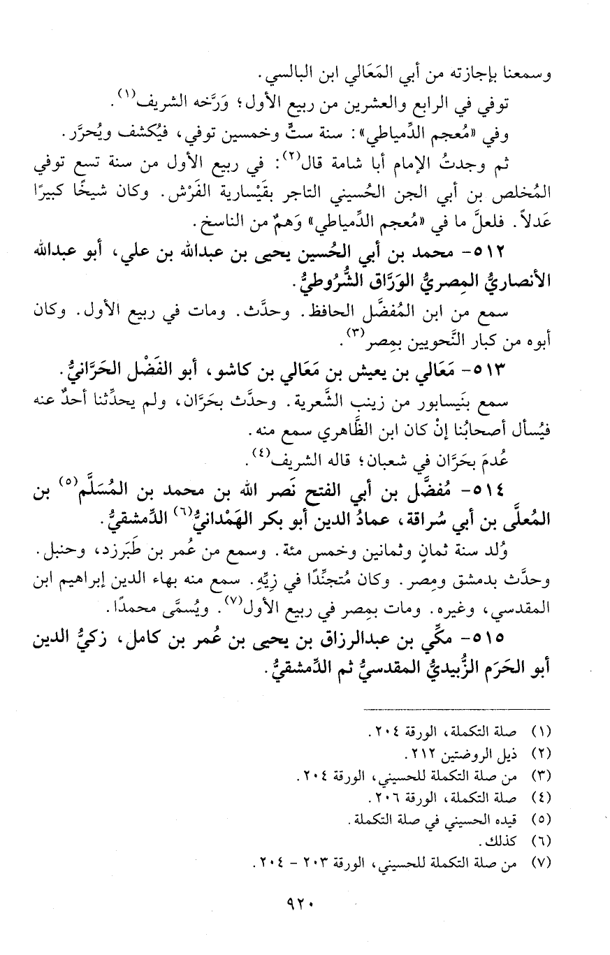 515 - مكّيّ بْن عَبْد الرّزّاق بْن يحيى بْن عُمَر بْن كامل، زكي الدين، أبو الحَرَم الزُّبَيْديّ، المقدسي، ثُمَّ الدّمشقيّ. [المتوفى: 659 هـ]-[921]-