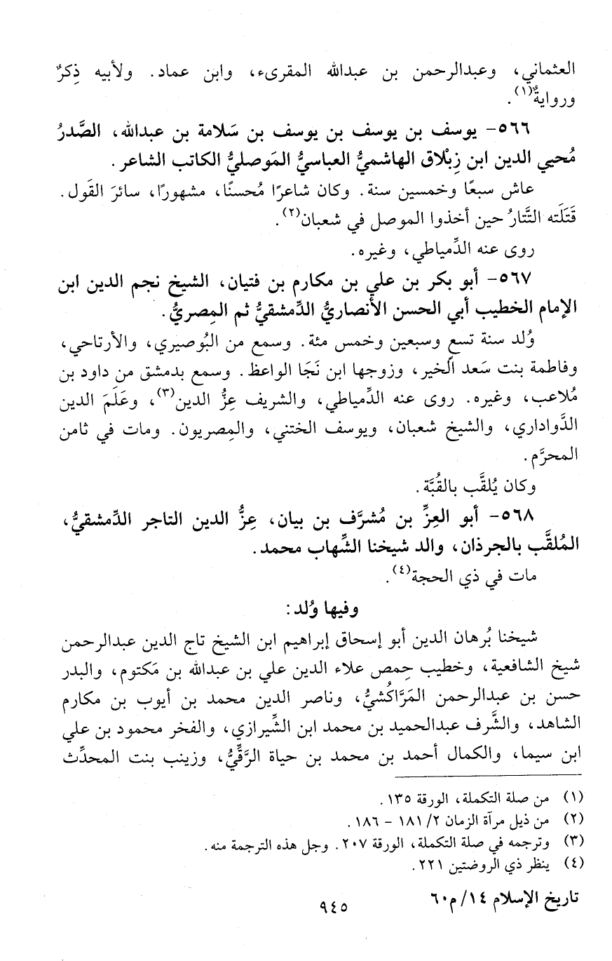 566 - يوسف بن يوسف بْن يوسف بْن سلامة بْن عَبْد الله، الصدر محيي الدّين ابن زبلاق، الهاشميّ، العبّاسيّ، الموصلي، الكاتب، الشّاعر. [المتوفى: 660 هـ]