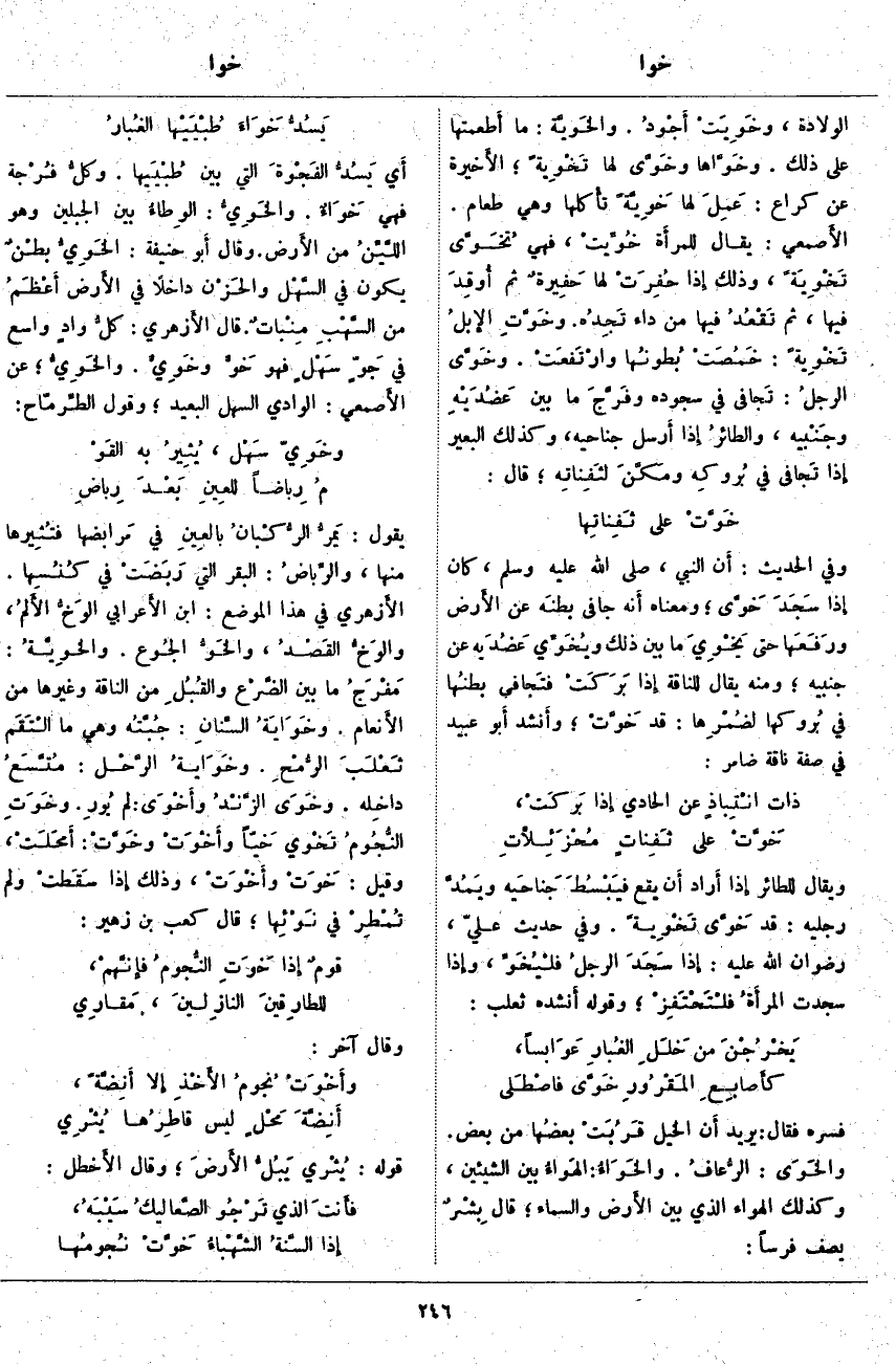 خَوٌّ وخَوِيٌّ. والخَوِيُّ؛ عَنِ الأَصمعي: الْوَادِي السَّهْلُ الْبَعِيدُ؛ وَقَوْلُ الطِّرمّاح:
