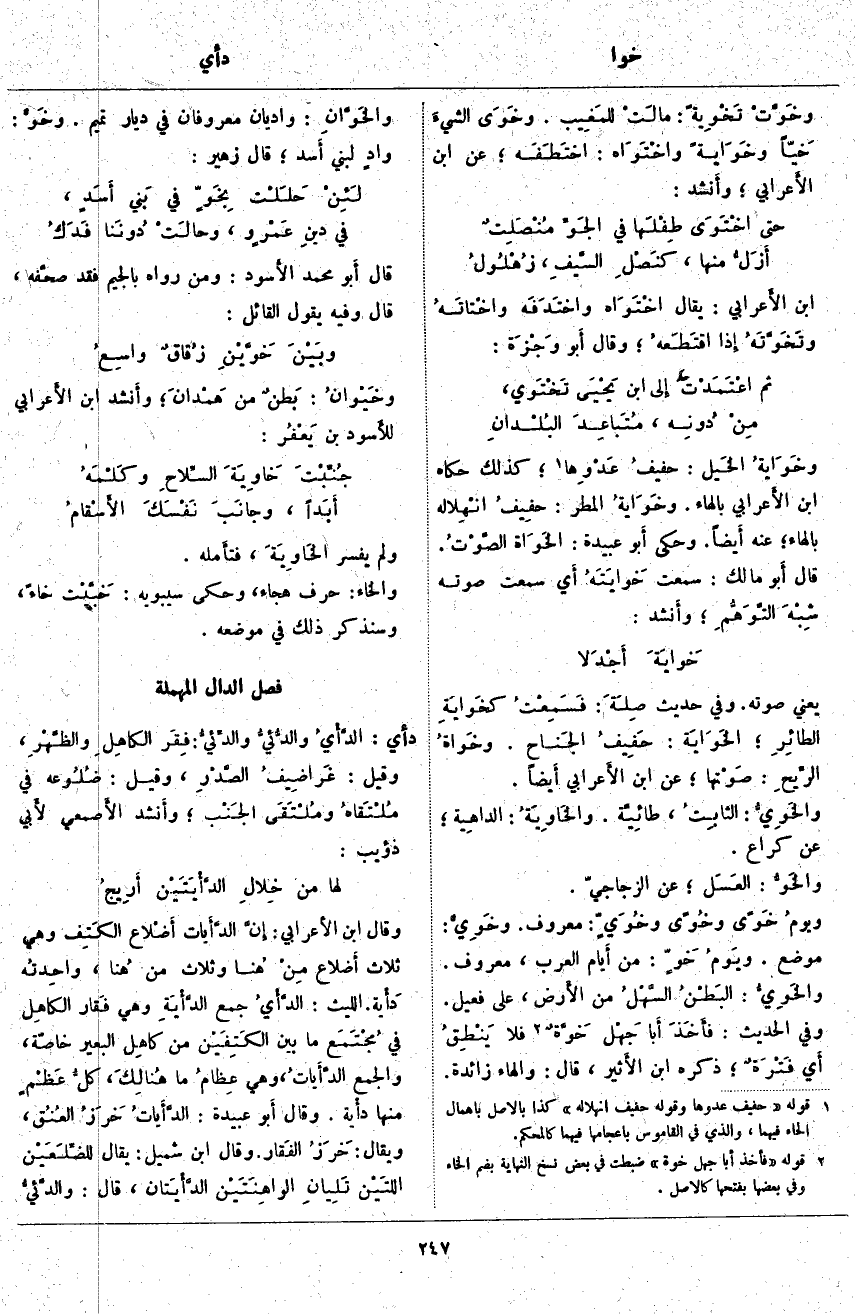 خَوٍّ: مِنْ أَيام الْعَرَبِ، مَعْرُوفٌ. والخَوِيُّ: البَطْنُ السَّهْلُ مِنَ الأَرض، عَلَى فَعِيلٍ. وَفِي الْحَدِيثِ: