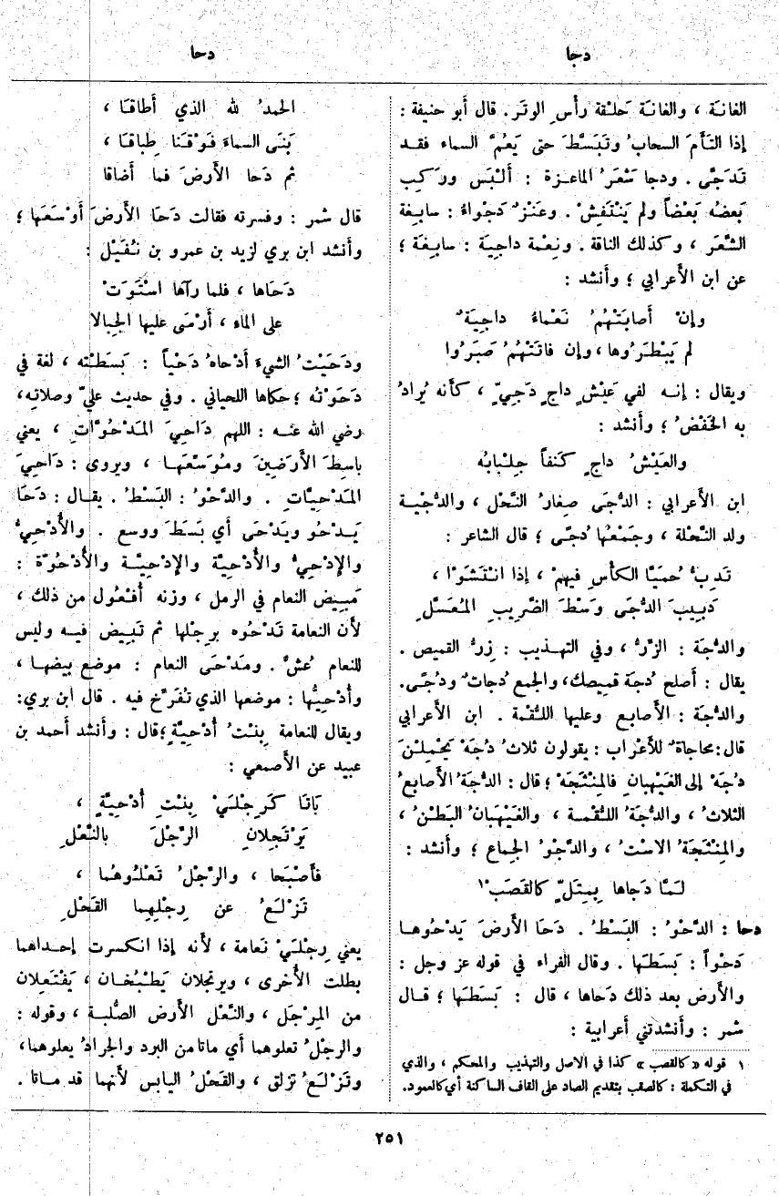 قَالَ شَمِرٌ: وَفَسَّرَتْهُ فَقَالَتْ دَحَا الأَرضَ أَوْسَعَها؛ وأَنشد ابْنُ بَرِّيٍّ لِزَيْدِ بْنُ عَمْرِو بْنِ نُفَيْل: