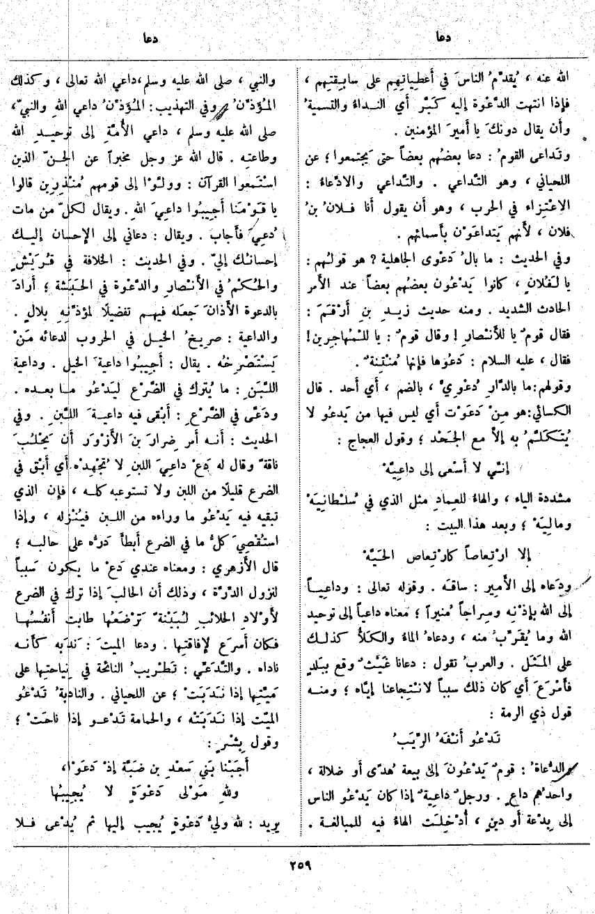 ؛ أَرادَ بالدَّعْوَة الأَذانَ جَعله فِيهِمْ تَفْضِيلًا لمؤذِّنِهِ بلالٍ. والدَّاعِيَة: صرِيخُ الْخَيْلِ فِي الْحُرُوبِ لِدُعَائِهِ مَنْ يَسْتَصْرِخُه. يُقَالُ: أَجِيبُوا داعِيَةَ الْخَيْلِ. ودَاعِيَة اللَّبَنِ: مَا يُترك فِي الضَّرْع ليَدْعُو مَا بَعْدَهُ. ودَعَّى فِي الضَّرْعِ: أَبْقى فِيهِ داعيةَ اللَّبنِ. وَفِي الْحَدِيثِ: