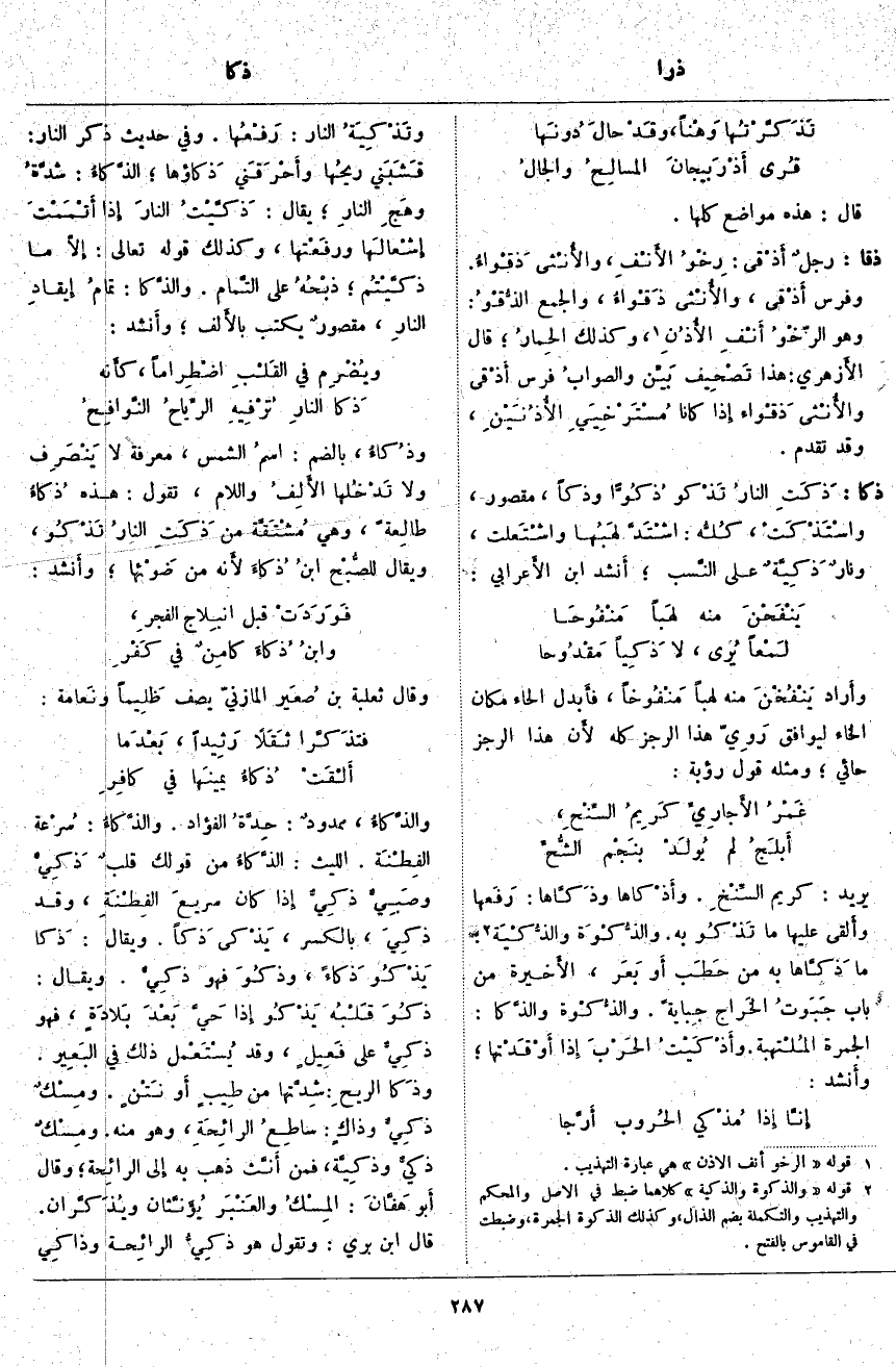 (2). قوله [والذُّكْوَة والذَّكْيَة] كلاهما ضبط في الأصل والمحكم والتهذيب والتكملة بضم الذال، وكذلك الذُّكْوَة الجمرة، وضبطت في القاموس بالفتح