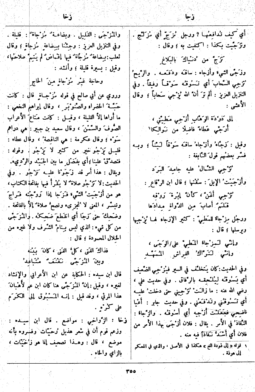 . وَقِيلَ: زَجَّاهُ وأَزْجَاهُ ساقَه سَوْقاً لَيِّناً؛ وَبِهِ فسَّر بعضُهم قولَ النَّابغة: