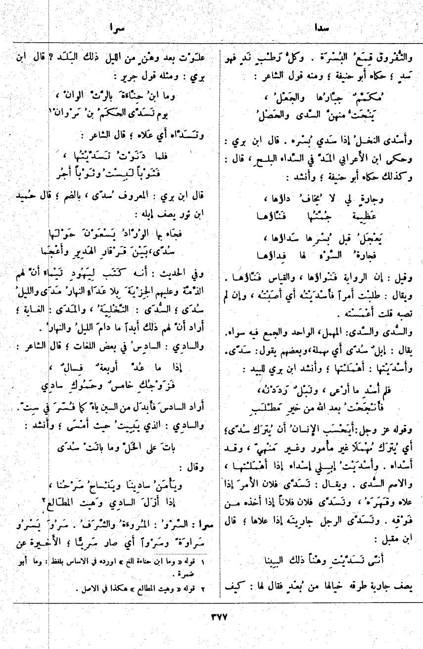 قَالَ ابْنُ بَرِّيٍّ: الْمَعْرُوفُ سُدًى، بِالضَّمِّ؛ قَالَ حُميد بْنُ ثَوْرٍ يَصِفُ إِبِلَهُ: