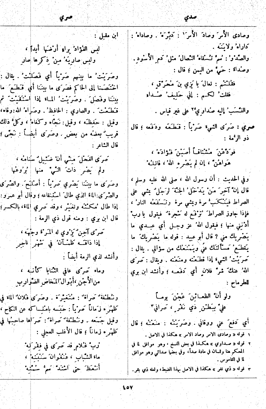 (3). قوله [وصَادَى الأَمر وَصَادَ الأَمر] هكذا في الأَصل