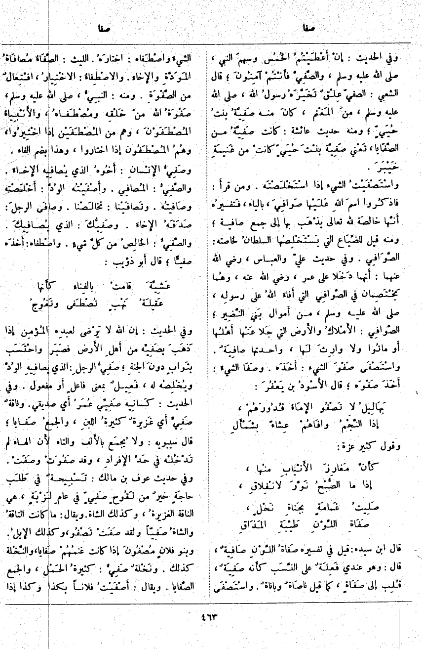 ؛ قَالَ الشَّعْبِيُّ: الصَّفِيُّ عِلْقٌ تَخَيَّرَهُ رسولُ اللَّهِ، صَلَّى اللَّهُ عَلَيْهِ وَسَلَّمَ، منَ المَغْنم، كانَ مِنْهُ صَفِيَّةُ بنتُ حُيَيٍّ؛ وَمِنْهُ حَدِيثُ
