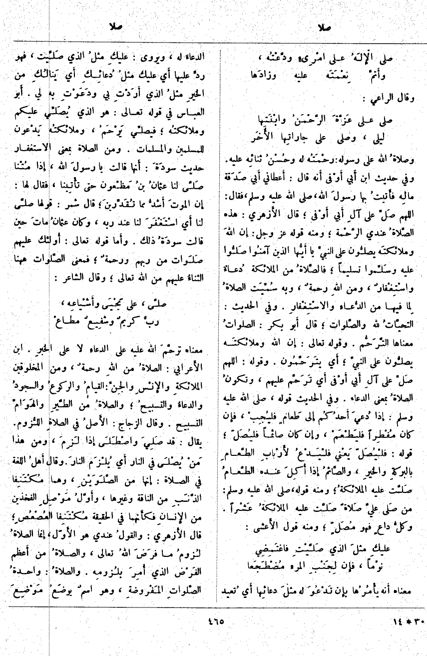 ؛ قَالَ الأَزهري: هَذِهِ الصَّلاةُ عِنْدِي الرَّحْمة؛ وَمِنْهُ قَوْلُهُ عَزَّ وَجَلَّ: إِنَّ اللَّهَ وَمَلائِكَتَهُ يُصَلُّونَ عَلَى النَّبِيِّ يَا أَيُّهَا الَّذِينَ آمَنُوا صَلُّوا عَلَيْهِ وَسَلِّمُوا تَسْلِيماً