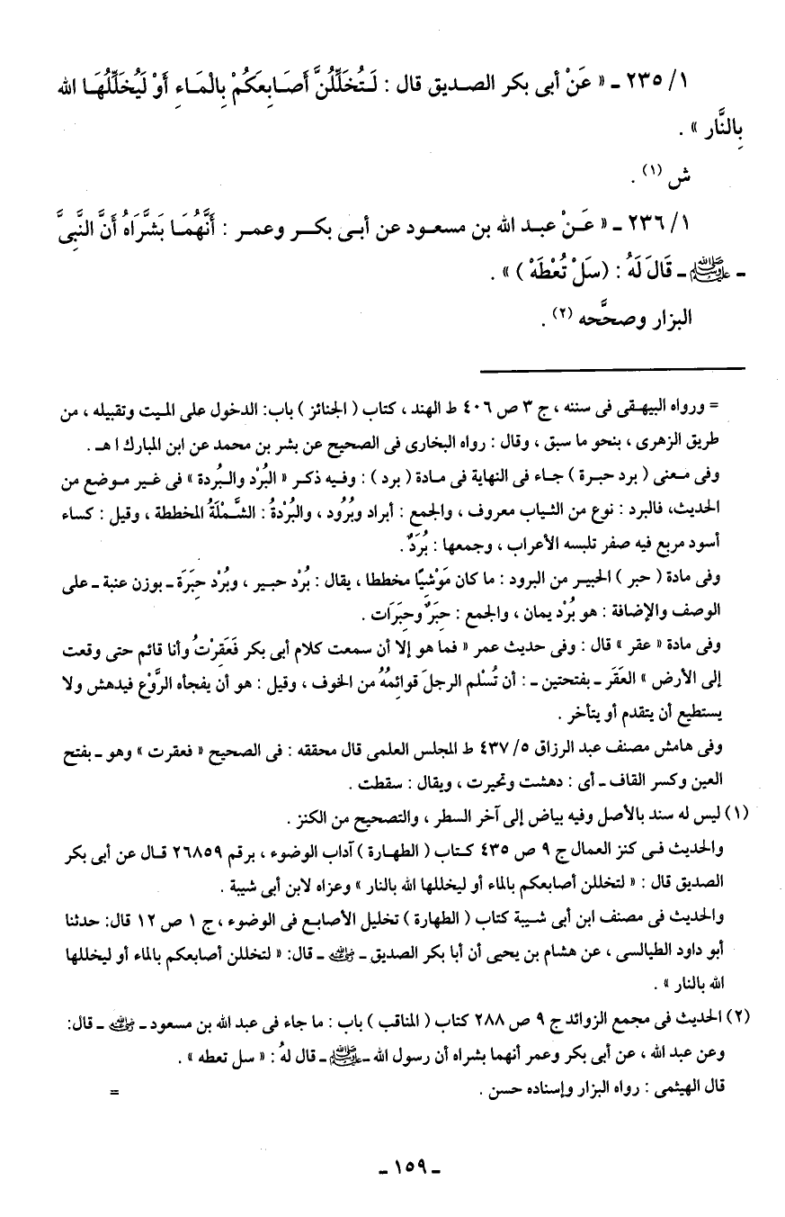 1/ 235 - "عَنْ أبى بكر الصديق قال: لَتُخَلِّلُنَّ أَصَابعَكُمْ بالْمَاءِ أوْ لَيُخَلِّلُهَا الله بِالنَّار".