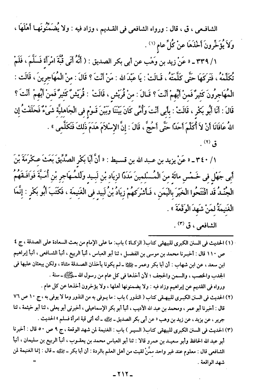 (¬2) الحديث في السنن الكبرى للبيهقى كتاب (النذور) باب: ما يوفى به من النذور وما لا يوفى به، ج 10 ص 76 قال: أخبرنا أبو عمر، ومحمد بن عبد الله الأديب، أنبأ أبو بكر الإسماعيلى، أخبرنى أبو يعلى، ثنا أبو خيثمة، ثنا جرير، عن يزيد، عن زيد بن وهب "عن أبى بكر الصديق - رضي الله عنه - أنه أتى قبة امرأة فسلم" الحديث.