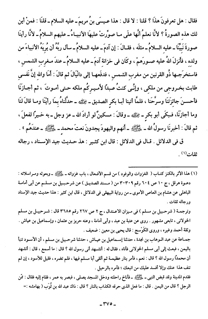 (¬1) هذا الأثر بالكنز كتاب (الغزوات والوفود) من قسم الأفعال، باب غزواته - صلى الله عليه وسلم - وبعوثه ومراسلاته: دعوة هرقل، ج 10 ص 604 رقم 30309 من (مسند الصديق) عن شرحبيل بن مسلم عن أبى أمامة الباهلى عن هشام بن العاص الأموى - من رواية البيهقى في الدلائل، قال ابن كثير: هذا حديث جيد الإسناد ورجاله ثقات.