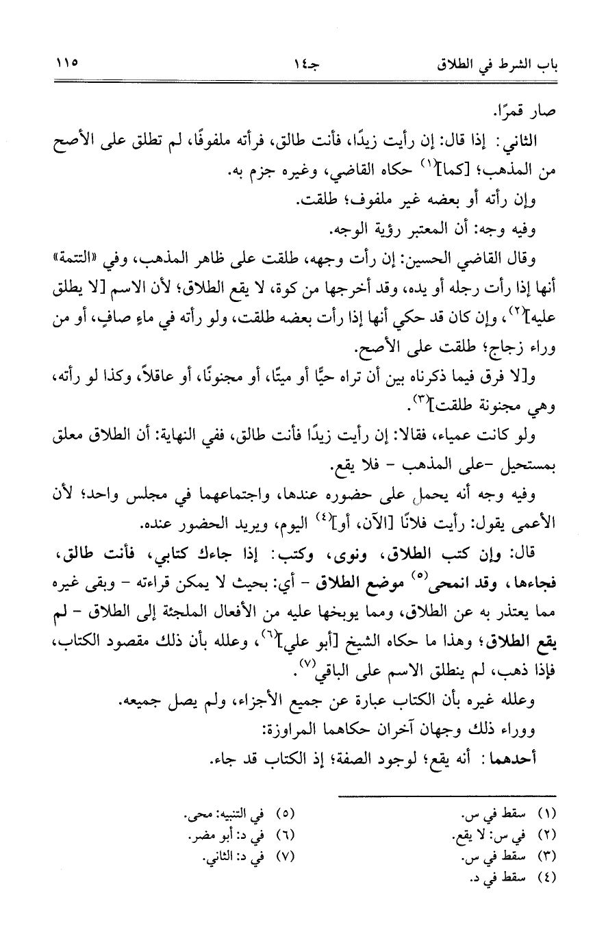 الثاني: إذا قال: إن رأيت زيداً، فأنت طالق، فرأته ملفوفاً، لم تطلق على الأصح من المذهب؛ [كما] حكاه القاضي، وغيره جزم به.