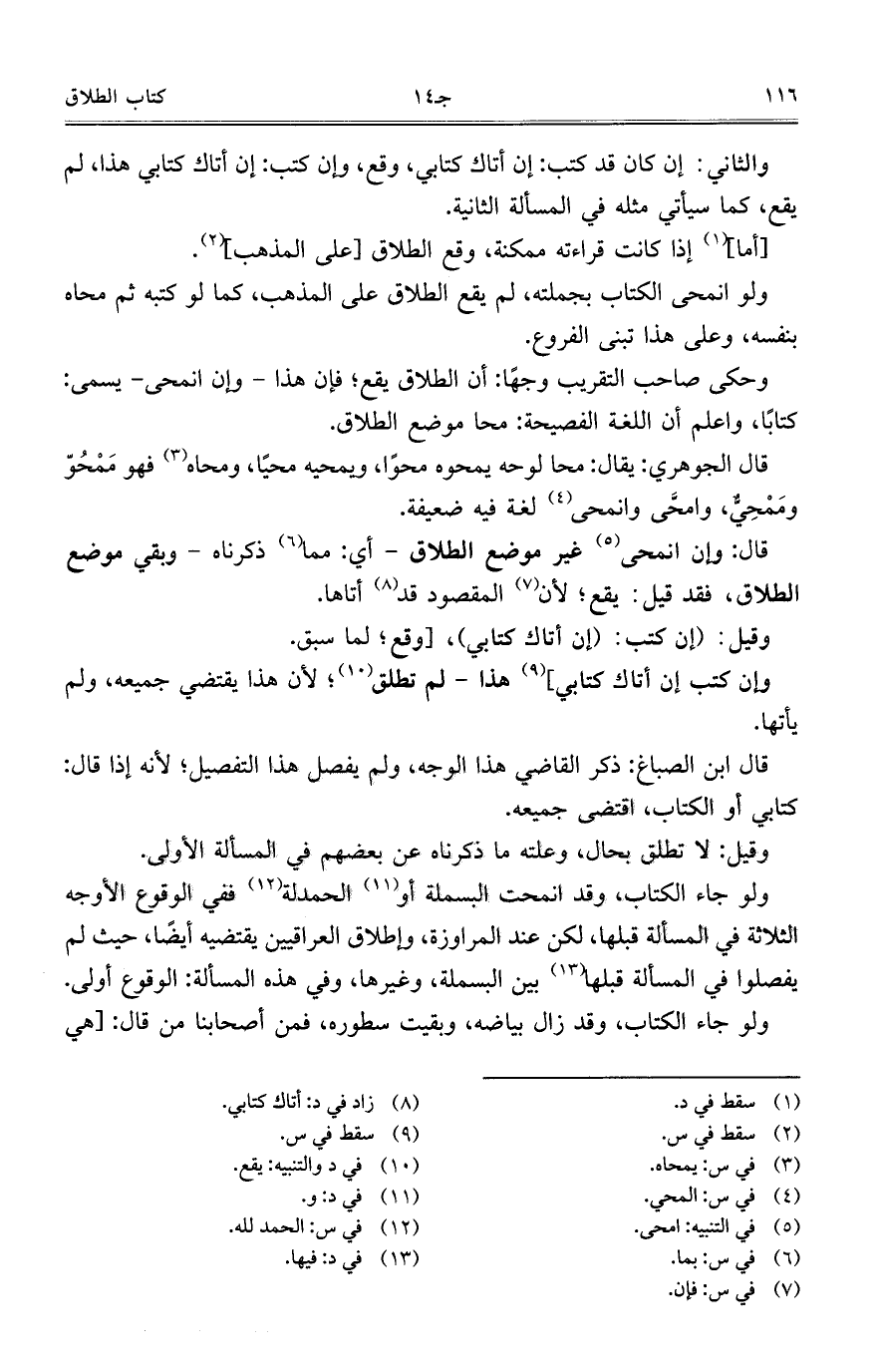 والثاني: إن كان قد كتب: إن أتاك كتابي، وقع، وإن كتب: إن أتاك كتابي هذا، لم يقع، كما سيأتي مثله في المسألة الثانية.