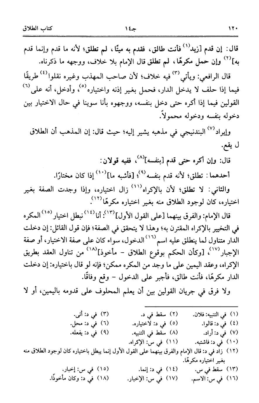 قال الرافعي: ويأتي فيه خلاف؛ لأن صاحب المهذب وغيره نقلوا طريقاً فيما إذا حلف لا يدخل الدار، فحمل بغير إذنه واختياره، وأدخل، أنه على القولين فيما إذا أكره حتى دخل بنفسه، ووجهوه بأنا سوينا في حال الاختيار بين دخوله بنفسه ودخوله محمولاً.