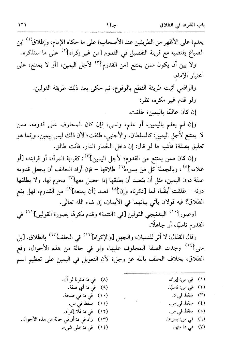 وقال القفال: لا أثر للنسيان، والجهل [والإكراه] في الحلف بالطلاق، [بل متى] وجدت الصفة المحلوف عليها، ولو في حالة من هذه الأحوال، وقع الطلاق، بخلاف الحلف بالله عز وجل؛ لأن التعويل في اليمين على تعظيم اسم