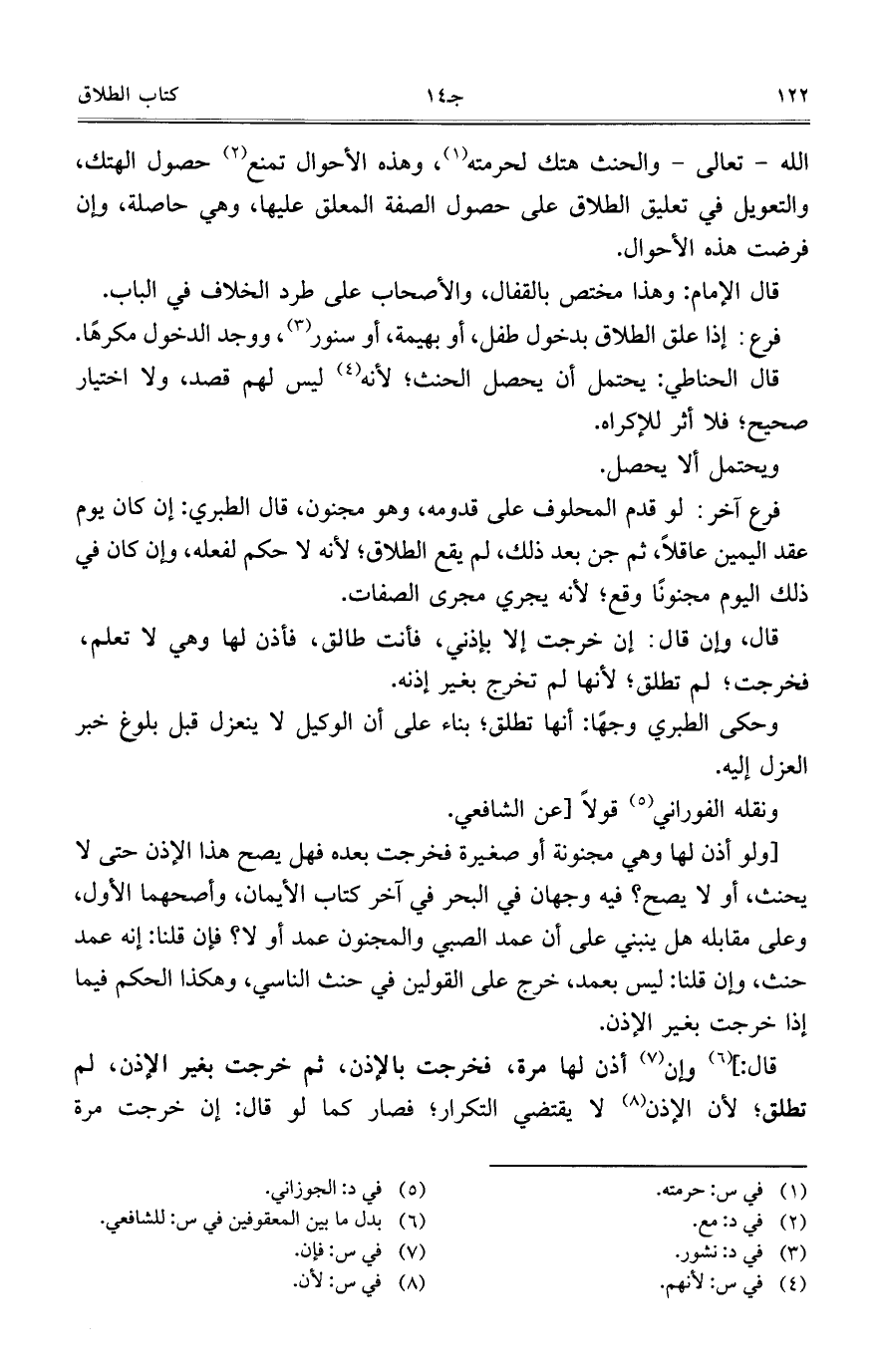 الله- تعالى- والحنث هتك لحرمته، وهذه الأحوال تمنع حصول الهتك، والتعويل في تعليق الطلاق على حصول الصفة المعلق عليها، وهي حاصلة، وإن فرضت هذه الأحوال.