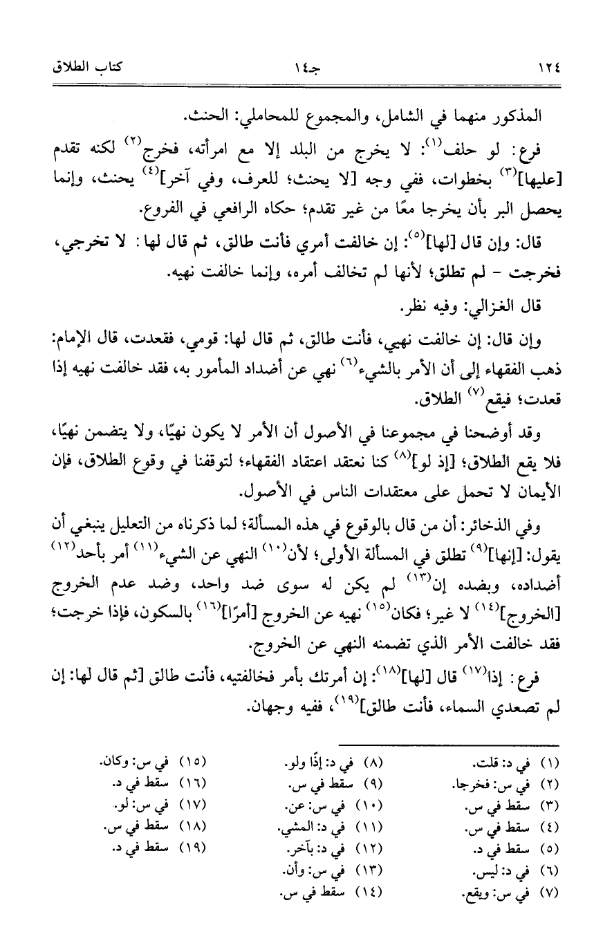 وإن قال: إن خالفت نهيي، فأنت طالق، ثم قال لها: قومي، فقعدت، قال الإمام: ذهب الفقهاء إلى أن الأمر بالشيء نهي عن أضداد المأمور به، فقد خالفت نهيه إذا قعدت؛ فيقع الطلاق.
