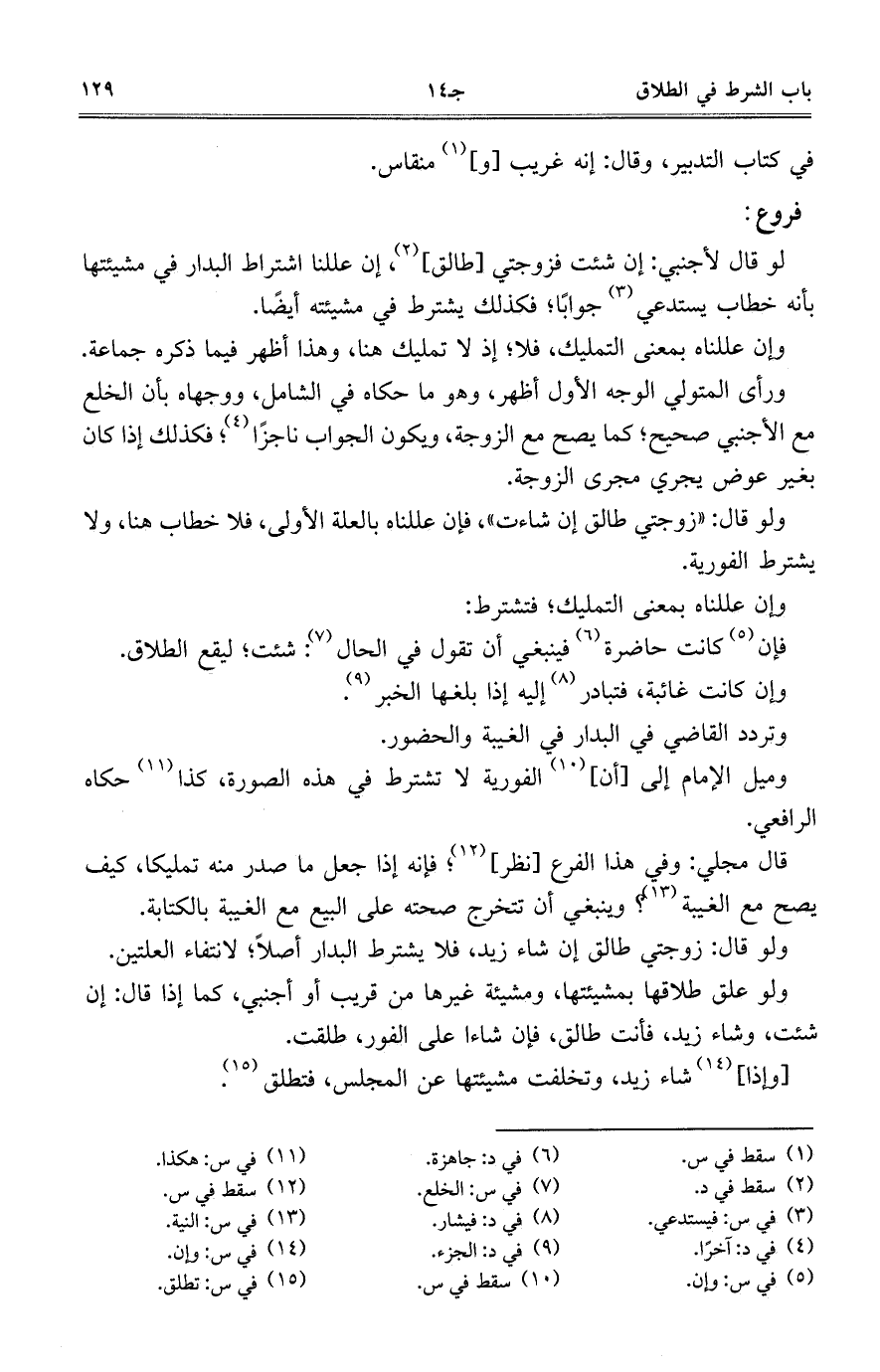 [وإذا] شاء زيد، وتخلفت مشيئتها عن المجلس، فتطلق.