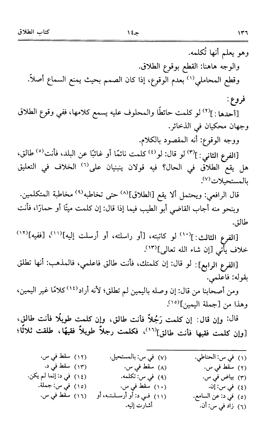 قال الرافعي: ويحتمل ألا يقع [الطلاق] حتى تخاطبه مخاطبة المتكلمين.