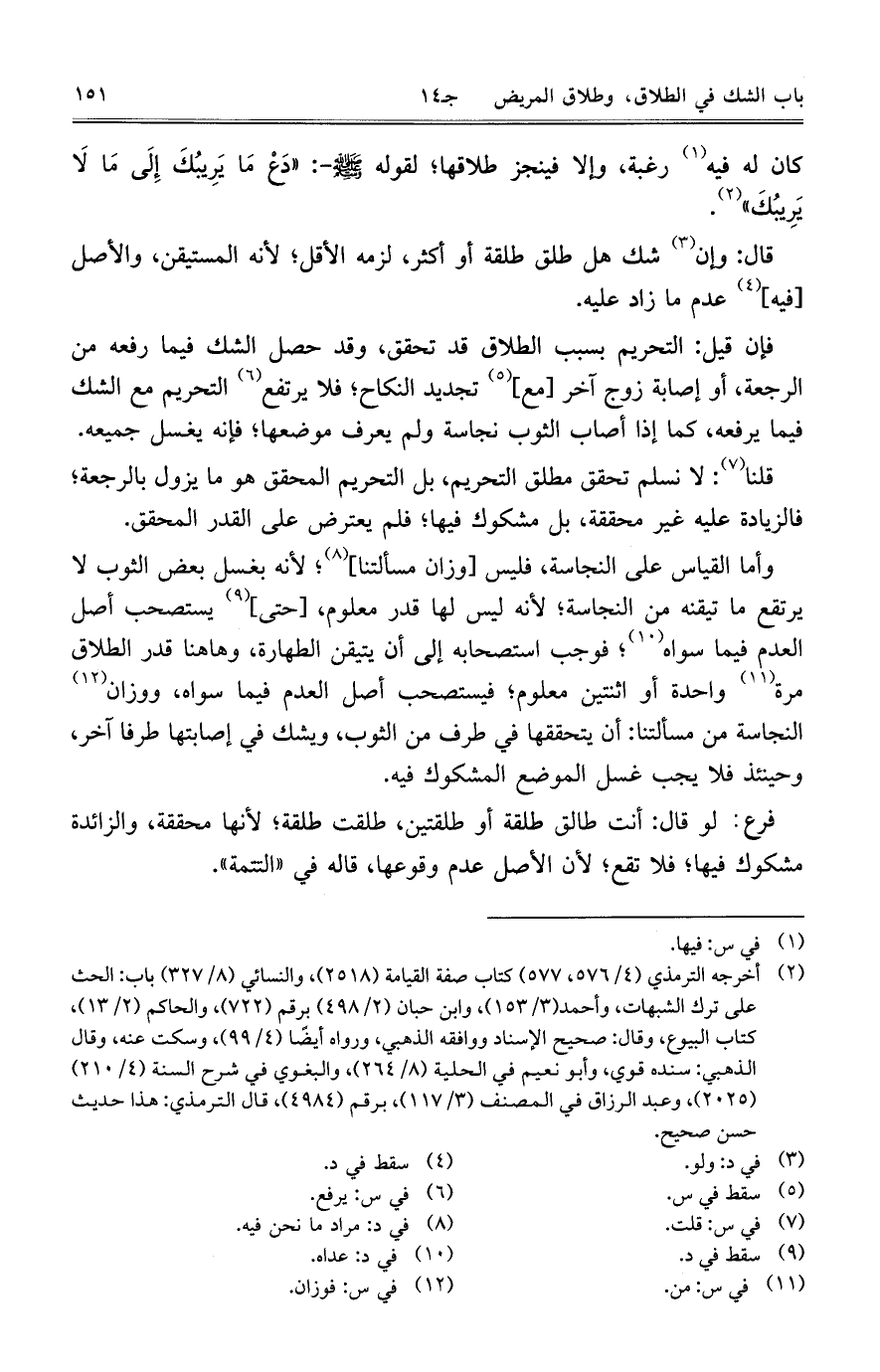 قلنا: لا نسلم تحقق مطلق التحريم، بل التحريم المحقق هو ما يزول بالرجعة؛ فالزيادة عليه غير محققة، بل مشكوك فيها؛ فلم يعترض على القدر المحقق.