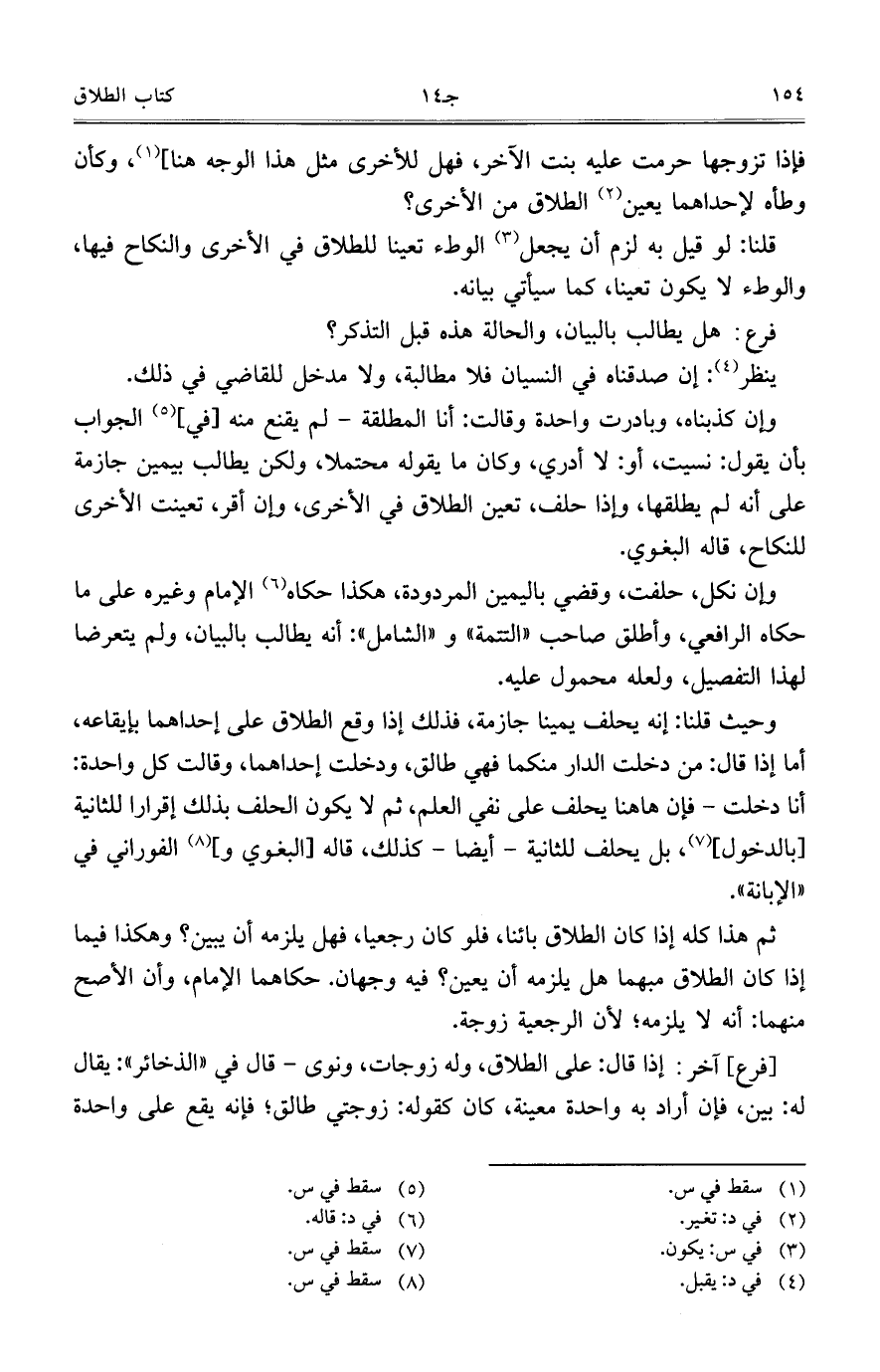 ثم هذا كله إذا كان الطلاق بائناً، فلو كان رجعياً، فهل يلزمه أن يبين؟ وهكذا فيما إذا كان الطلاق مبهماً هل يلزمه أن يعين؟ فيه وجهان. حكاهما الإمام، وأن الأصح منهما: أنه لا يلزمه؛ لأن الرجعية زوجة.