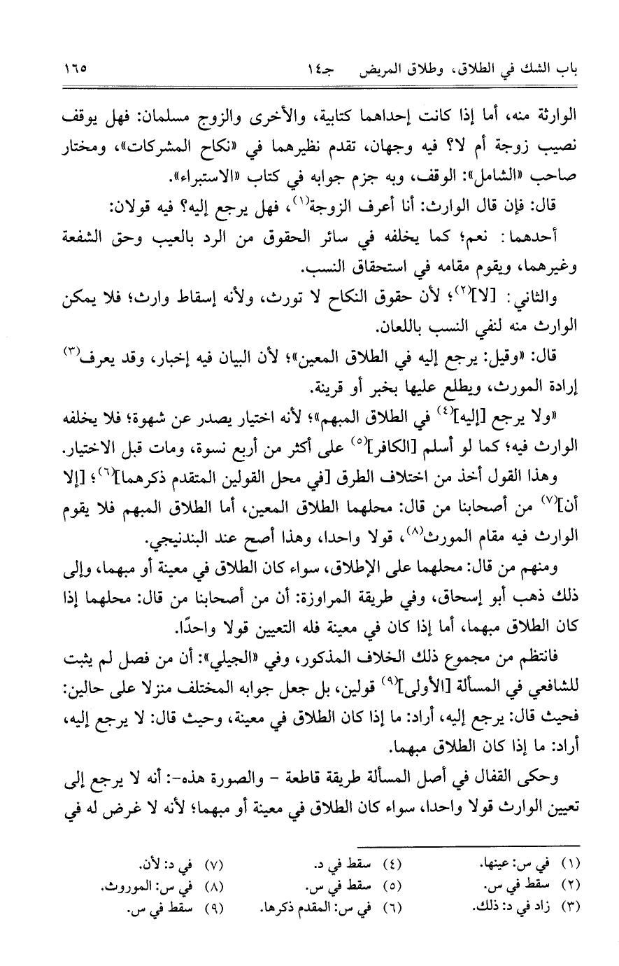 وهذا القول أخذ من اختلاف الطرق [في محل القولين المتقدم ذكرهما]؛ [إلا أن] من أصحابنا من قال: محلهما الطلاق المعين، أما الطلاق المبهم فلا يقوم الوارث فيه مقام المورث، قولاً واحداً، وهذا أصح عند البندنيجي.