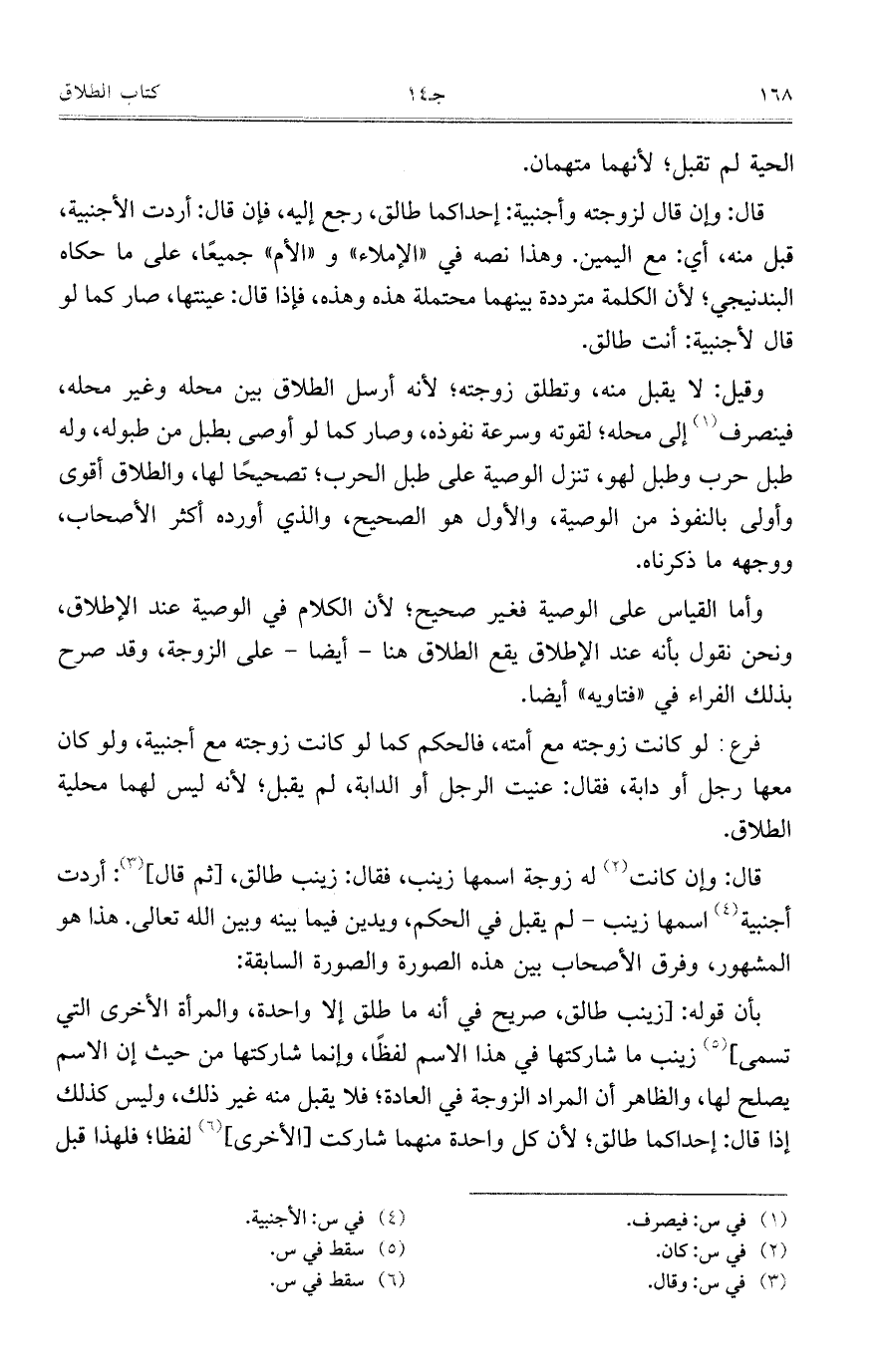 وأما القياس على الوصية فغير صحيح؛ لأن الكلام في الوصية عند الإطلاق، ونحن نقول بأنه عند الإطلاق يقع الطلاق هنا- أيضاً- على الزوجة، وقد صرح بذلك الفراء في "فتاويه" أيضاً.