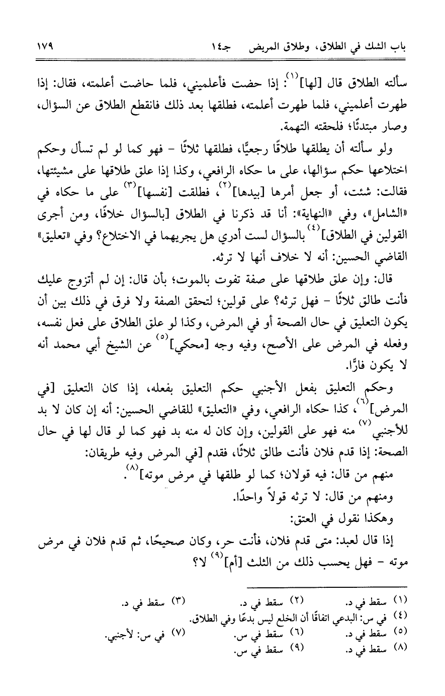 سألته الطلاق قال [لها]: إذا حضت فأعلميني، فلما حاضت أعلمته، فقال: إذا طهرت أعلميني، فلما طهرت أعلمته، فطلقها بعد ذلك فانقطع الطلاق عن السؤال، وصار مبتدئاً؛ فلحقته التهمة.