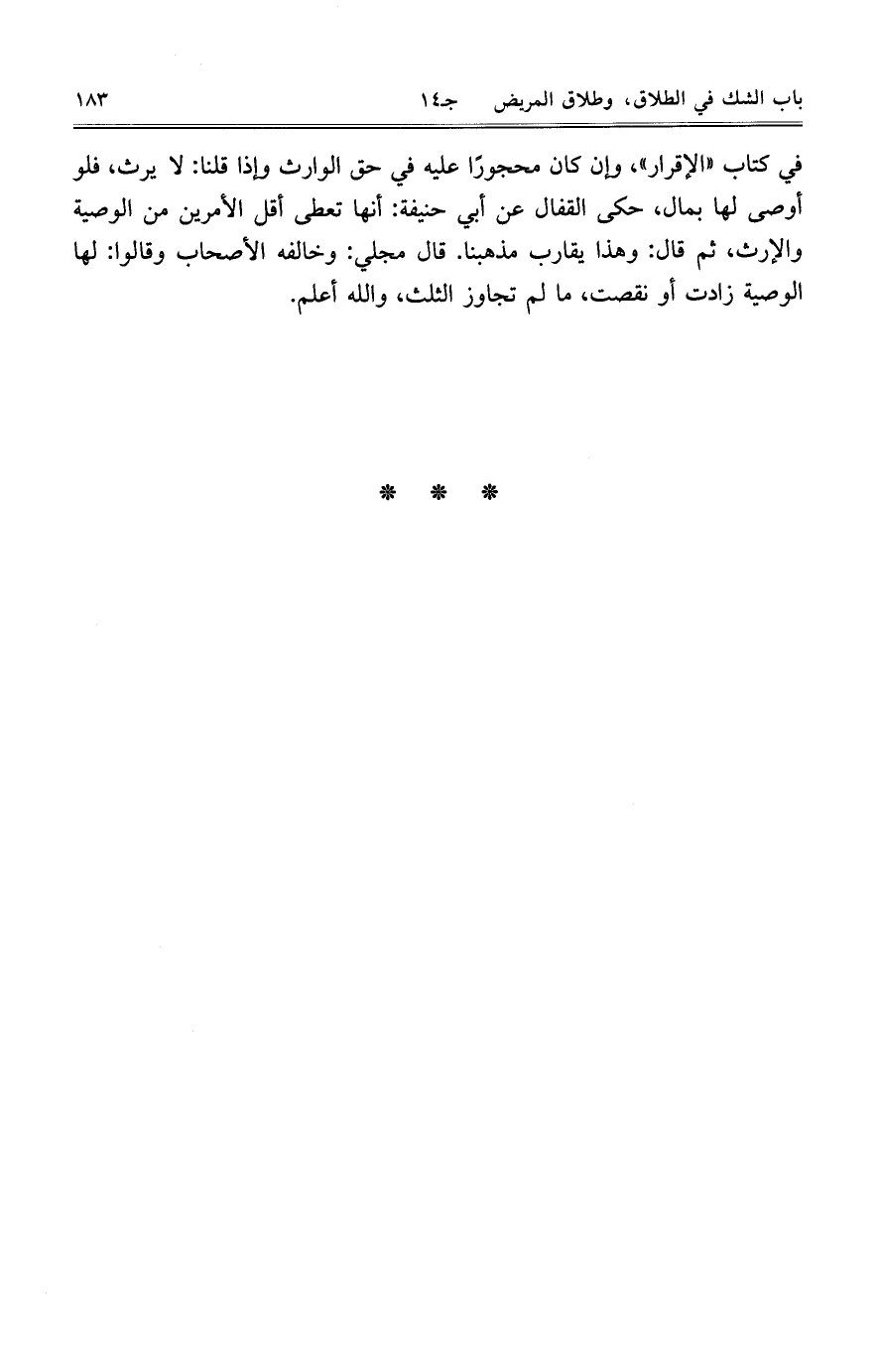 في كتاب "الإقرار"، وإن كان محجوراً عليه في حق الوارث وإذا قلنا: لا يرث، فلو أوصى لها بمال، حكى القفال عن أبي حنيفة: أنها تعطى أقل الأمرين من الوصية والإرث، ثم قال: وهذا يقارب مذهبنا. قال مجلي: وخالفه الأصحاب وقالوا: لها الوصية زادت أو نقصت، ما لم تجاوز الثلث، والله أعلم.