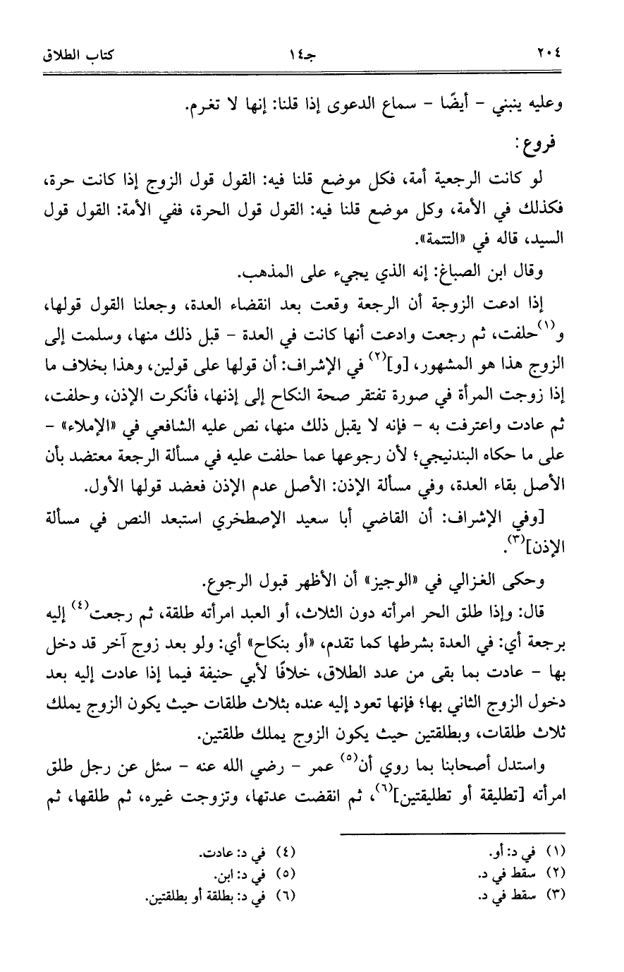 قال: وإذا طلق الحر امرأته دون الثلاث، أو العبد امرأته طلقة، ثم رجعت إليه برجعة أي: في العدة بشرطها كما تقدم، "أو بنكاح" أي: ولو بعد زوج آخر قد دخل بها- عادت بما بقى من عدد الطلاق، خلافاً لأبي حنيفة فيما إذا عادت إليه بعد دخول الزوج الثاني بها؛ فإنها تعود إليه عنده بثلاث طلقات حيث يكون الزوج يملك ثلاث طلقات، وبطلقتين حيث يكون الزوج يملك طلقتين.