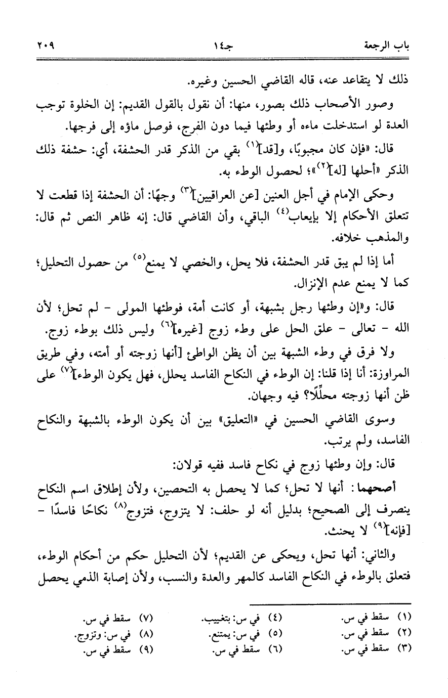 وسوى القاضي الحسين في "التعليق" بين أن يكون الوطء بالشبهة والنكاح الفاسد، ولم يرتب.