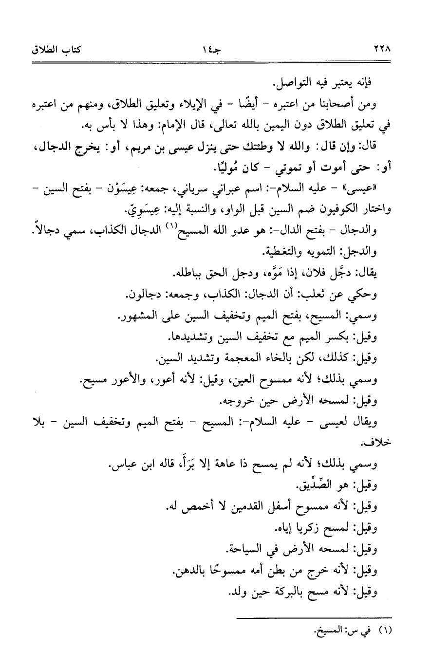 ويقال لعيسى- عليه السلام-: المسيح- بفتح الميم وتخفيف السين- بلا خلاف.