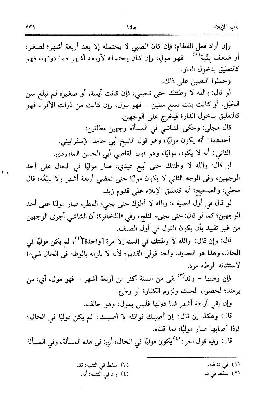 وإن أراد فعل الفطام: فإن كان الصبي لا يحتمله إلا بعد أربعة أشهر؛ لصغر، أو ضعف بِنْية- فهو مولٍ، وإن كان يحتمله لأربعة أشهر فما دونها، فهو كالتعليق بدخول الدار.