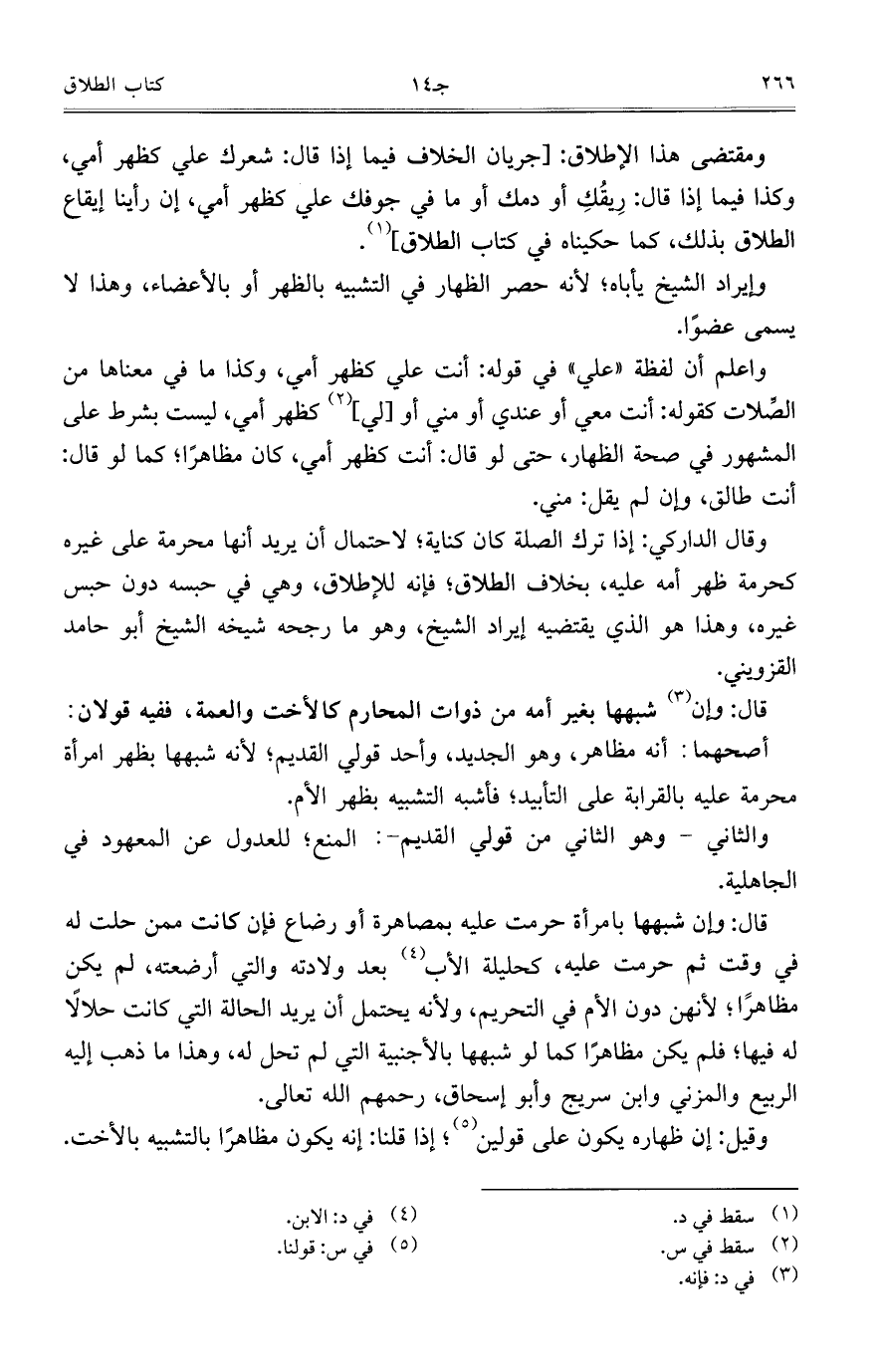 وقال الداركي: إذا ترك الصلة كان كناية؛ لاحتمال أن يريد أنها محرمة على غيره كحرمة ظهر أمه عليه، بخلاف الطلاق؛ فإنه للإطلاق، وهي في حبسه دون حبس غيره، وهذا هو الذي يقتضيه إيراد الشيخ، وهو ما رجحه شيخه الشيخ أبو حامد القزويني.