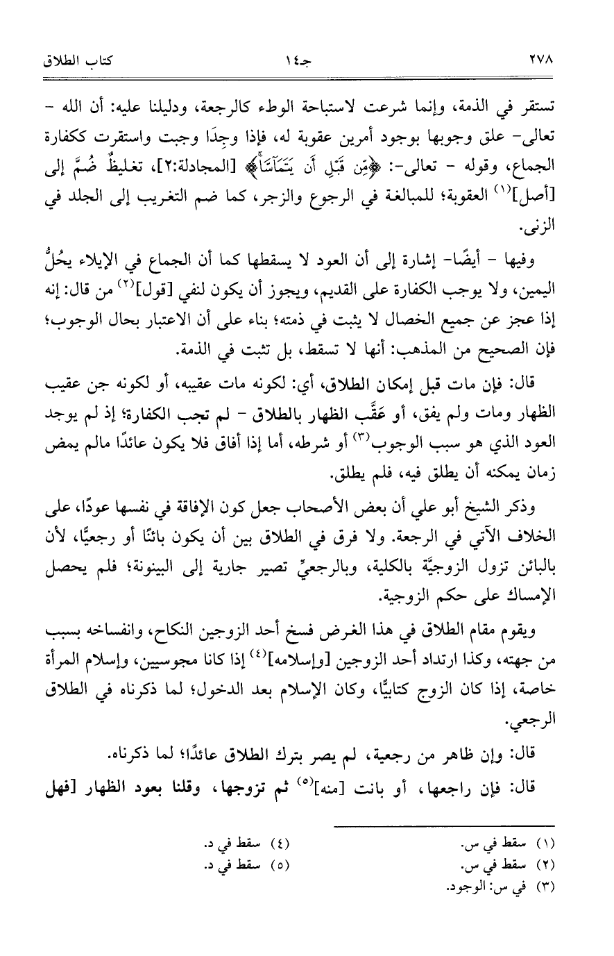 وفيها- أيضاً- إشارة إلى أن العود لا يسقطها كما أن الجماع في الإيلاء يحُلُّ اليمين، ولا يوجب الكفارة على القديم، ويجوز أن يكون لنفي [قول] من قال: إنه إذا عجز عن جميع الخصال لا يثبت في ذمته؛ بناءً على أن الاعتبار بحال الوجوب؛ فإن الصحيح من المذهب: أنها لا تسقط، بل تثبت في الذمة.