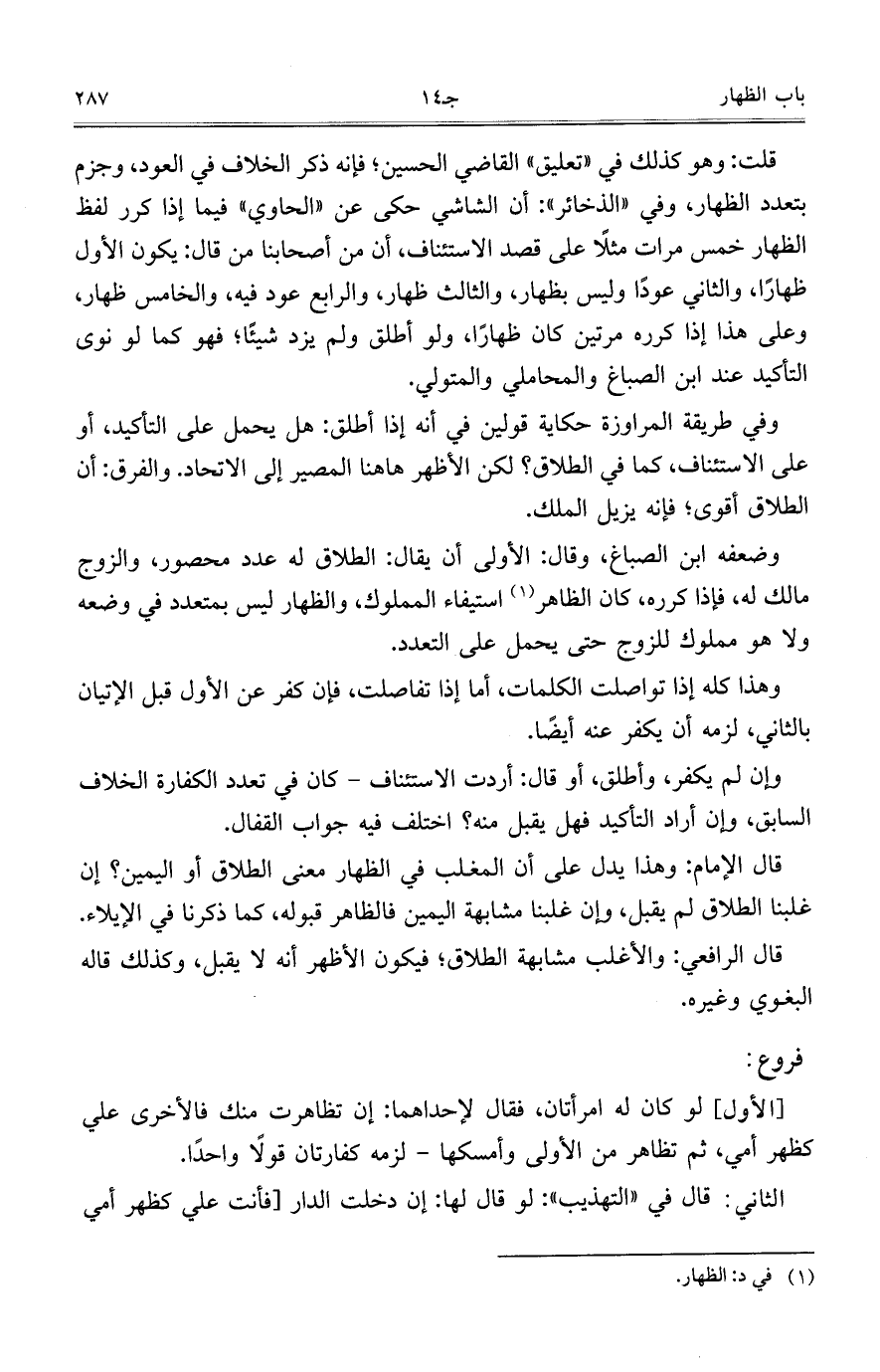 وضعفه ابن الصباغ، وقال: الأولى أن يقال: الطلاق له عدد محصور، والزوج مالك له، فإذا كرره، كان الظاهر استيفاء المملوك، والظهار ليس بمتعدد في وضعه ولا هو مملوك للزوج حتى يحمل على التعدد.