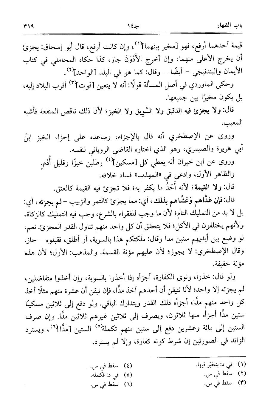 ولو قال: خذوا، ونوى الكفارة، أجزأه إذا أخذوا بالسوية، وإن أخذوا متفاضلين، لم يجزئه إلا واحد؛ لأنا نتيقن أن أحدهم أخذ مدّاً، فإن تيقن أن عشرة منهم مثلاً أخذ كل واحد منهم مدّاً، أجزأه ذلك القدر ويتدارك الباقي. ولو دفع إلى ثلاثين مسكيناً ستين مدّاً أجزأه منها ثلاثون، ويصرف إلى ثلاثين غيرهم ثلاثين مدّاً. وإن صرف الستين إلى مائة وعشرين دفع إلى ستين منهم تكملة الستين [مدّاً]، ويسترد الزائد في الصورتين إن شرط كونه كفارة، وإلا لم يسترد.