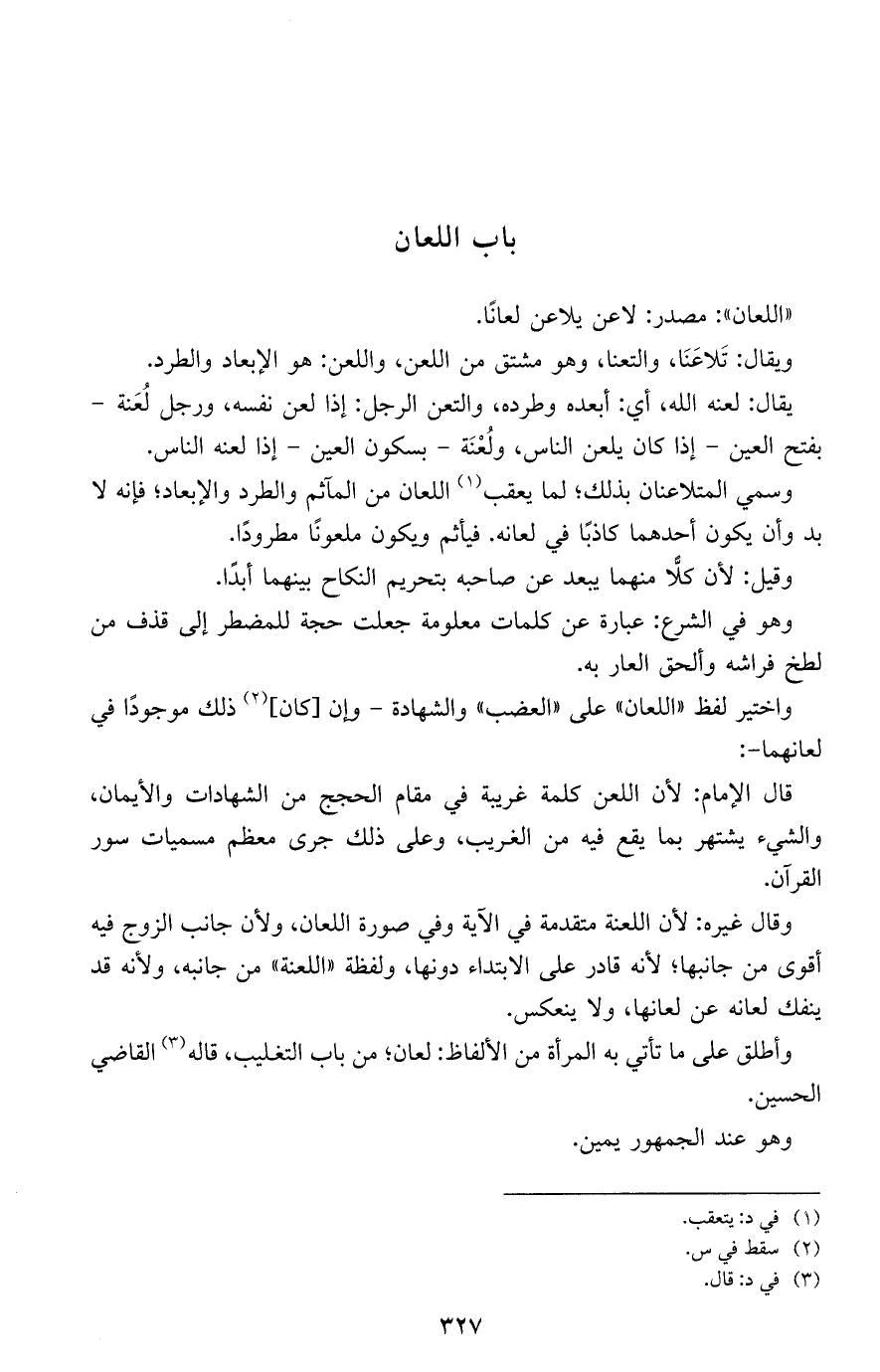 "اللعان": مصدر: لاعن يلاعن لعاناً.
