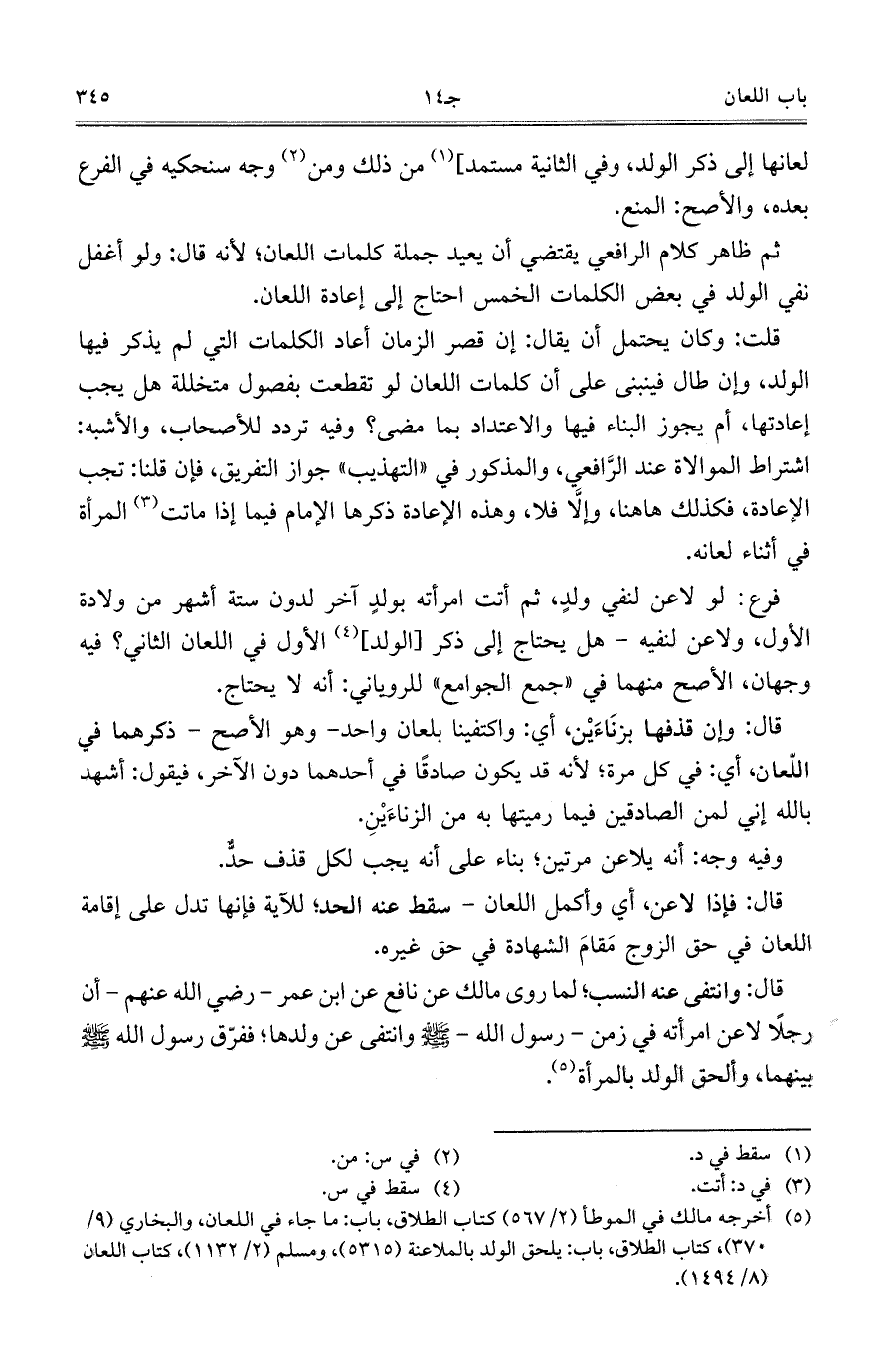 ثم ظاهر كلام الرافعي يقتضي أن يعيد جملة كلمات اللعان؛ لأنه قال: ولو أغفل نفي الولد في بعض الكلمات الخمس احتاج إلى إعادة اللعان.