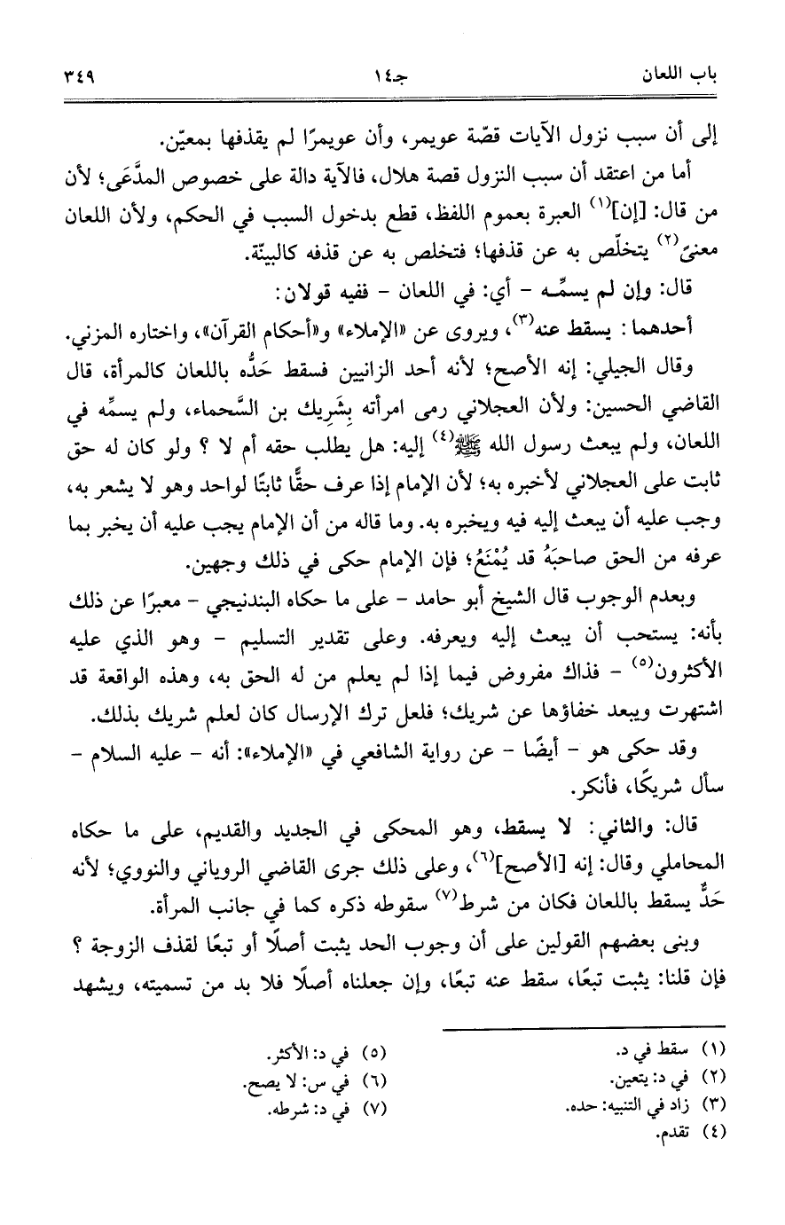قال: والثاني: لا يسقط، وهو المحكي في الجديد والقديم، على ما حكاه المحاملي وقال: إنه [الأصح]، وعلى ذلك جرى القاضي الروياني والنووي؛ لأنه حَدٌّ يسقط باللعان فكان من شرط سقوطه ذكره كما في جانب المرأة.