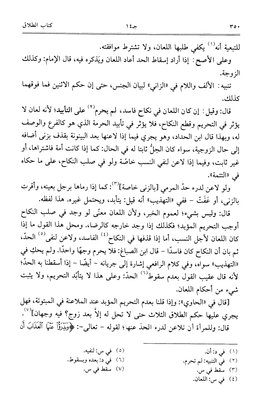 للتبعية أنه يكفي طلبها اللعان، ولا تشترط موافقته.