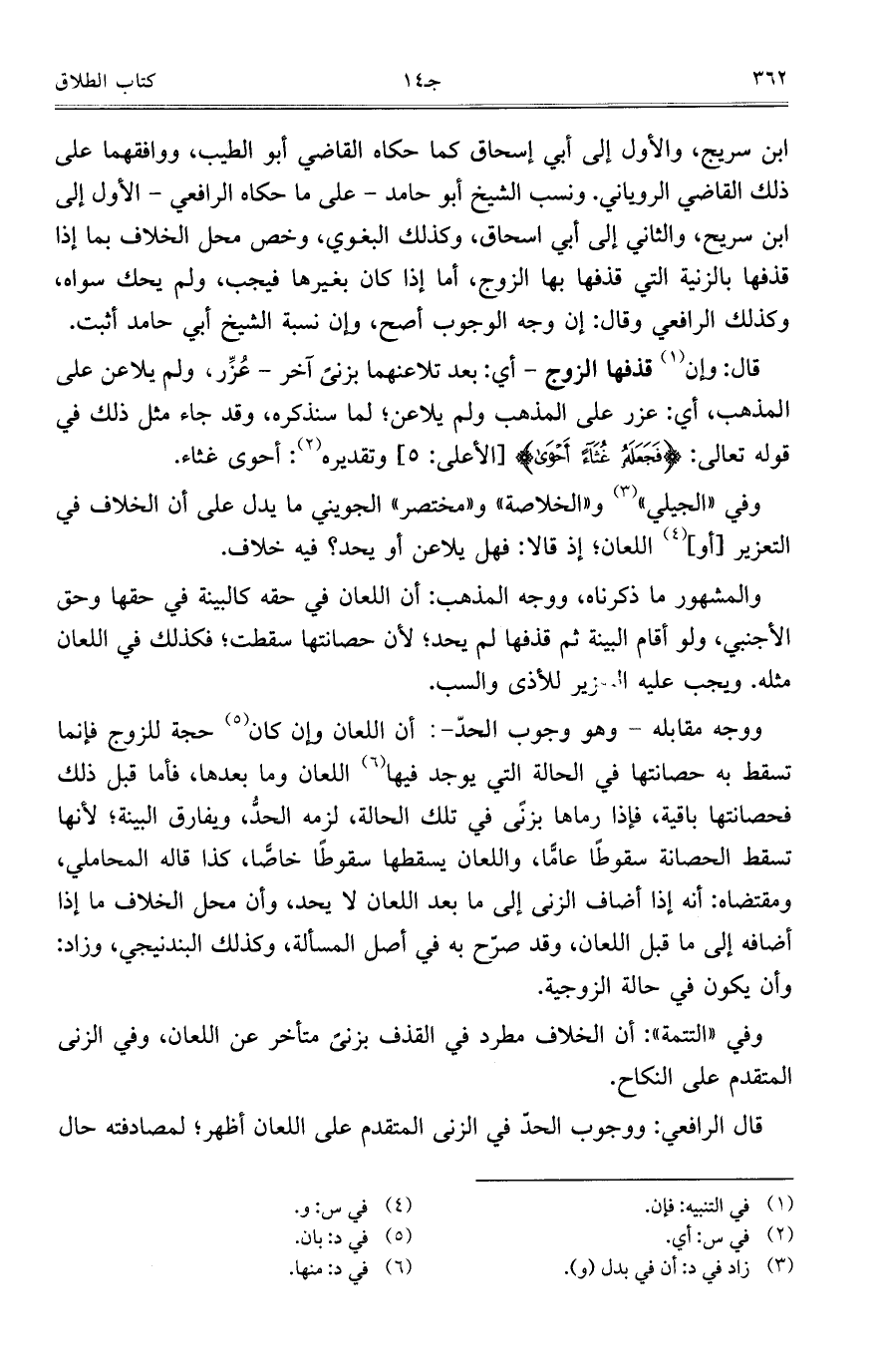 ابن سريج، والأول إلى أبي إسحاق كما حكاه القاضي أبو الطيب، ووافقهما على ذلك القاضي الروياني. ونسب الشيخ أبو حامد- على ما حكاه الرافعي- الأول إلى ابن سريج، والثاني إلى أبي إسحاق، وكذلك البغوي، وخص محل الخلاف بما إذا قذفها بالزنية التي قذفها بها الزوج، أما إذا كان بغيرها فيجب، ولم يحك سواه، وكذلك الرافعي وقال: إن وجه الوجوب أصح، وإن نسبة الشيخ أبي حامد أثبت.