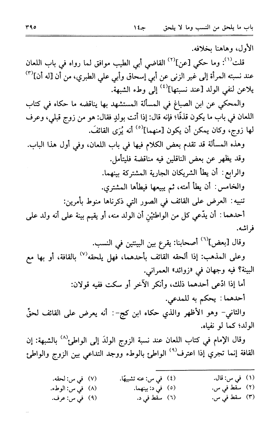 قلت: وما حكي [عن] القاضي أبي الطيب موافق لما رواه في باب اللعان عند نسبته المرأة إلى غير الزنى عن أبي إسحاق وأبي علي الطبري، من أن [له أن] يلاعن لنفي الولد [عند نسبتها] إلى وطء الشبهة.