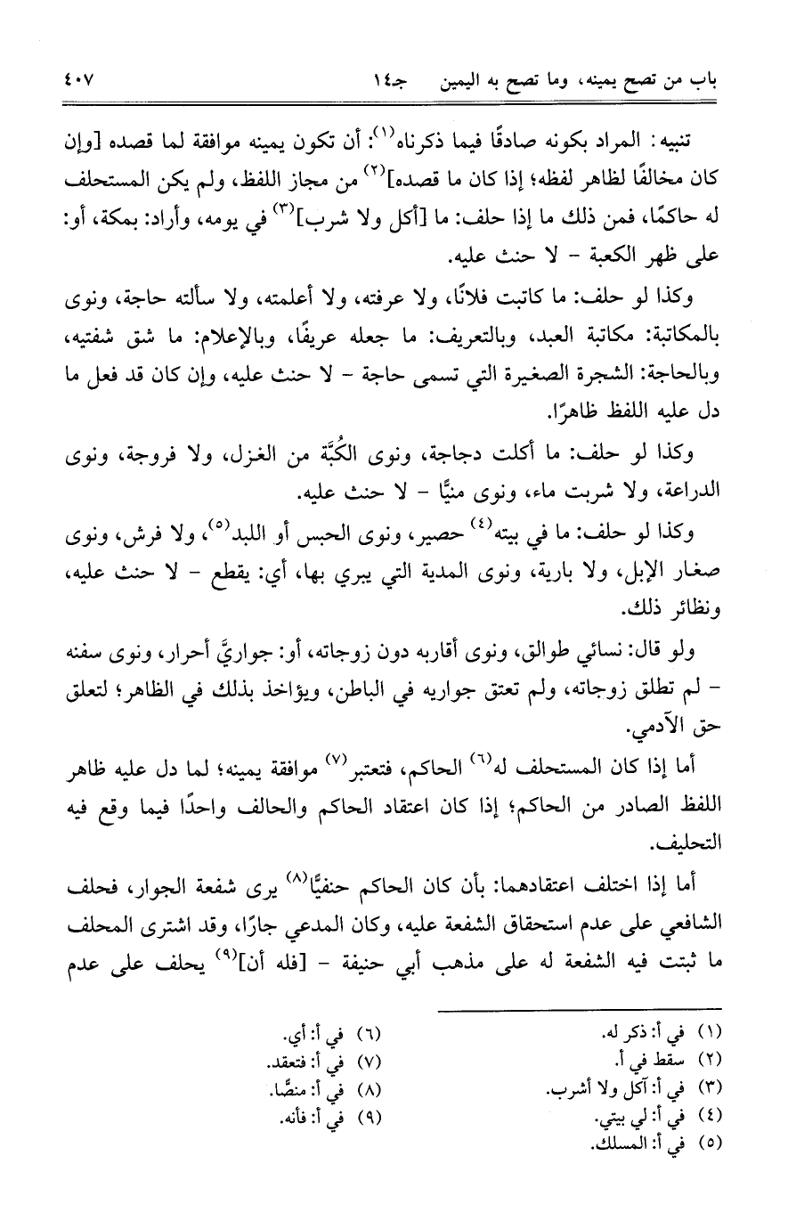 أما إذا اختلف اعتقادهما: بأن كان الحاكم حنفيّاً يرى شفعة الجوار، فحلف الشافعي على عدم استحقاق الشفعة عليه، وكان المدعي جاراً، وقد اشترى المحلف ما ثبتت فيه الشفعة له على مذهب أبي حنيفة-[فله أن] يحلف على عدم