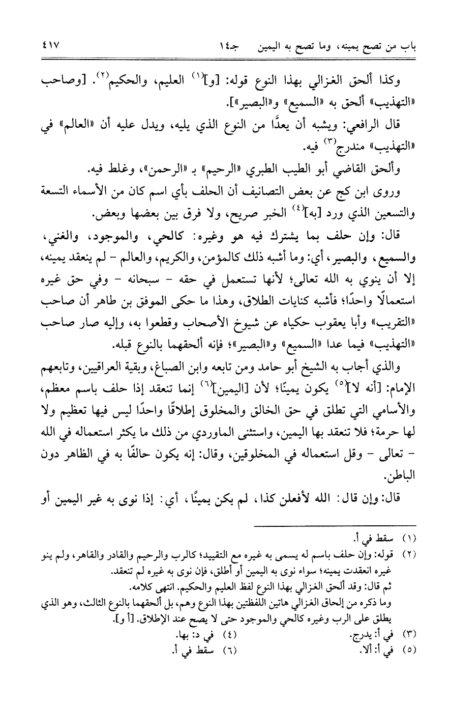 وكذا ألحق الغزالي بهذا النوع قوله: [و] العليم، والحكيم. [وصاحب "التهذيب" ألحق به "السميع" و"البصير"].